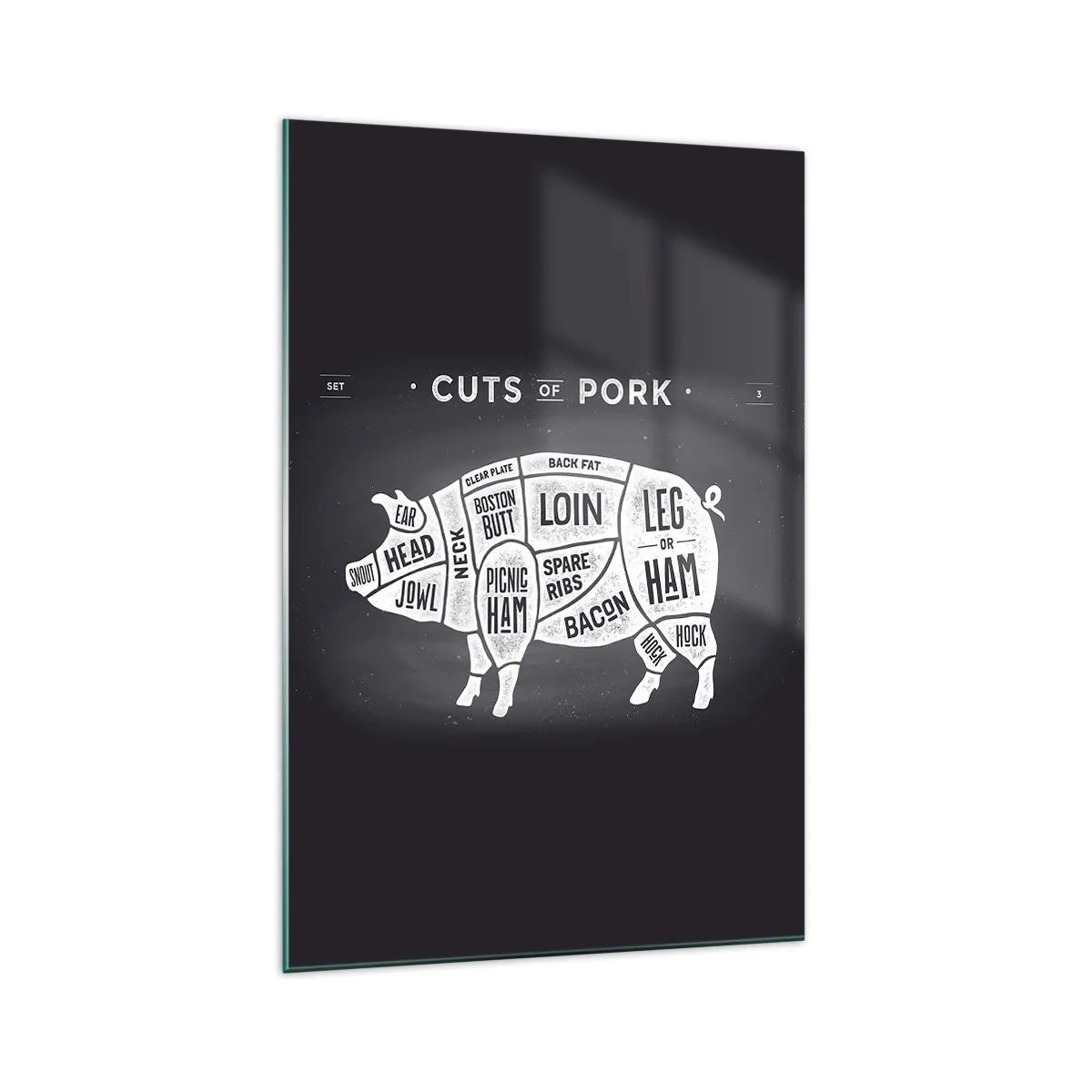 Az üvegen lévő kép 4 mm vastag üvegből készült. Az üveg szélei matt trapéz alakúak. A festmény biztonságosan használható és felakasztható - a festmény hátulján fém akasztók és hab távtartók vannak, amelyek szabályozzák a festmény és a fal közötti egyenletes távolságot.