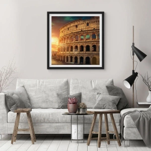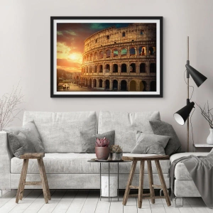 Poszter fehér keretben - A római Colosseum naplementekor - 50x70cm - Kolosszális benyomás - Modern fali dekoráció nappalihoz és hálószobához ARTTOR