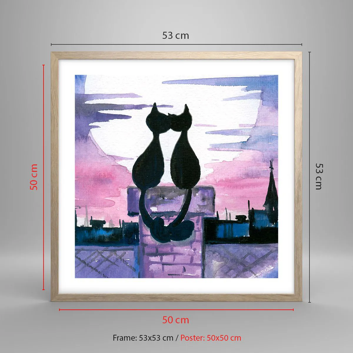 Poszter világos tölgy keretben - Rendez-vous a holdfénynél - 50x50 cm