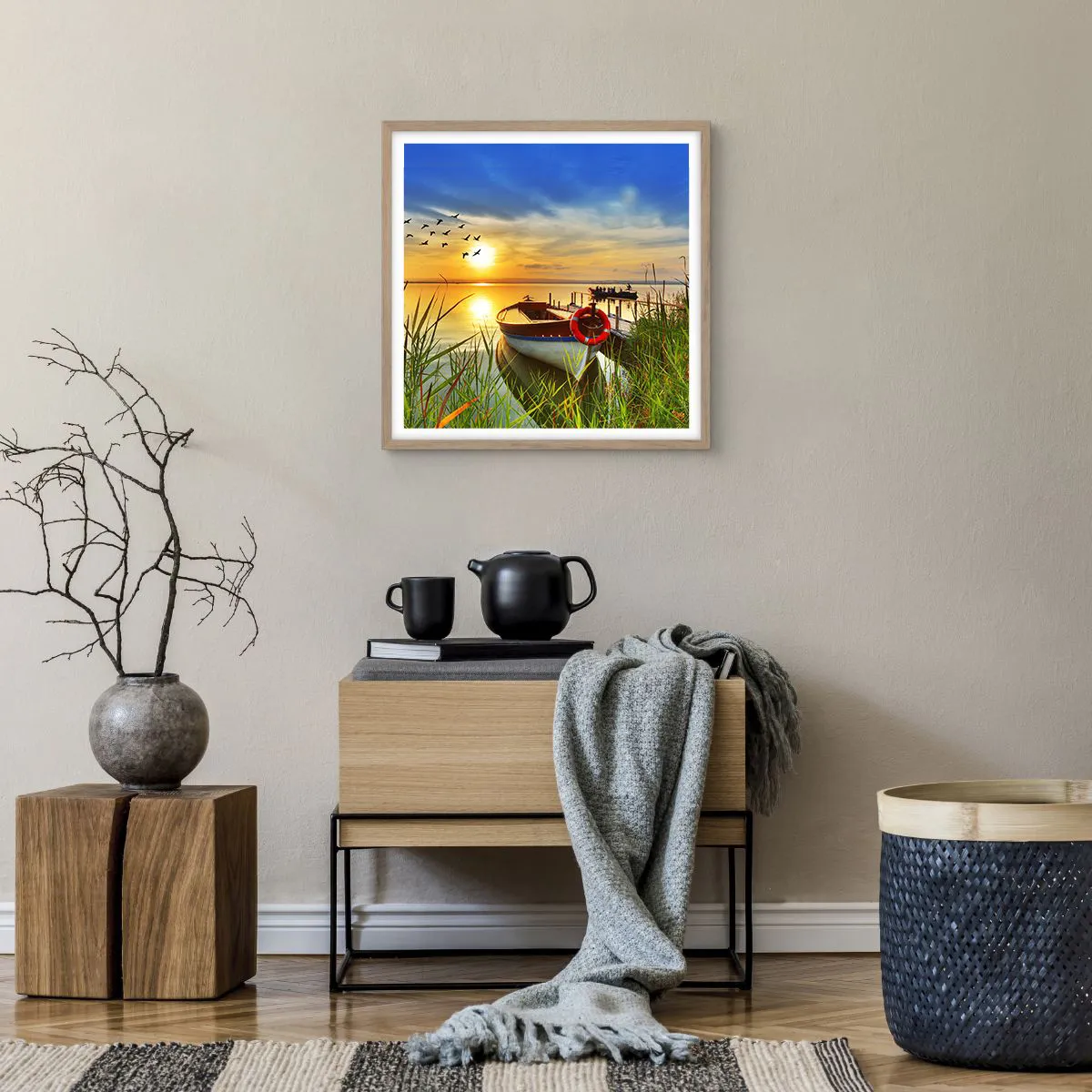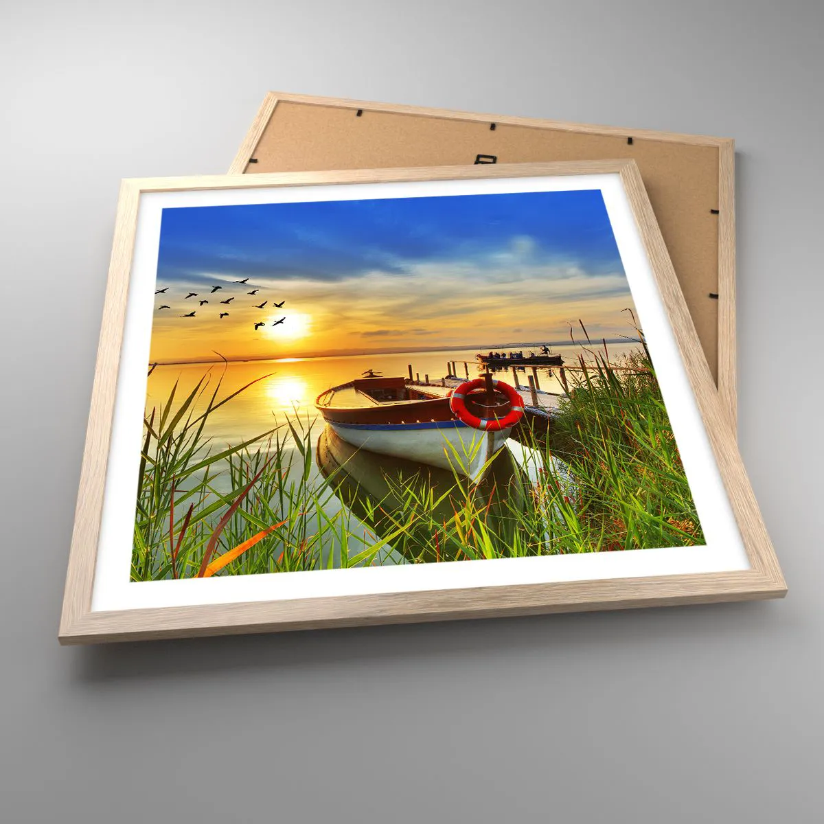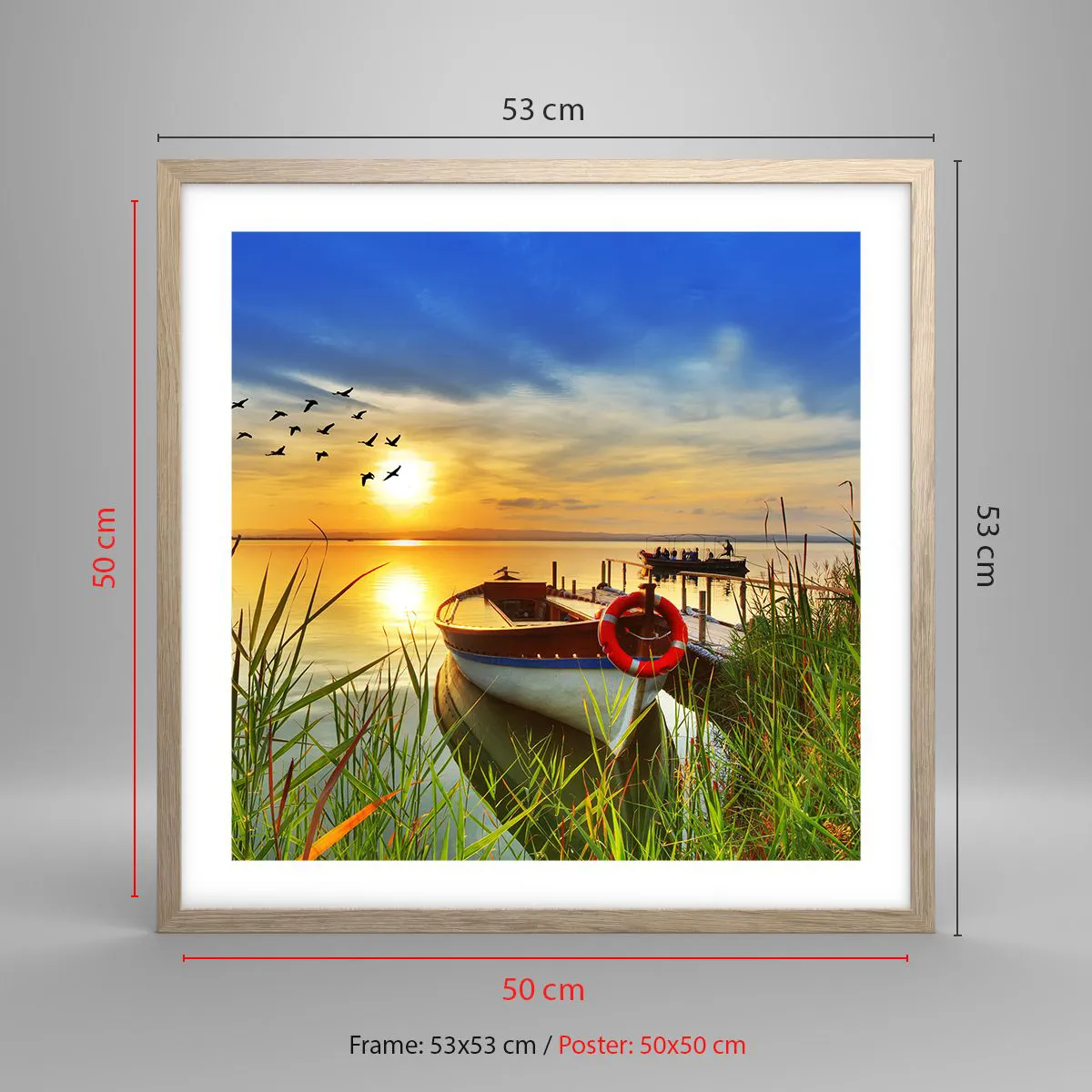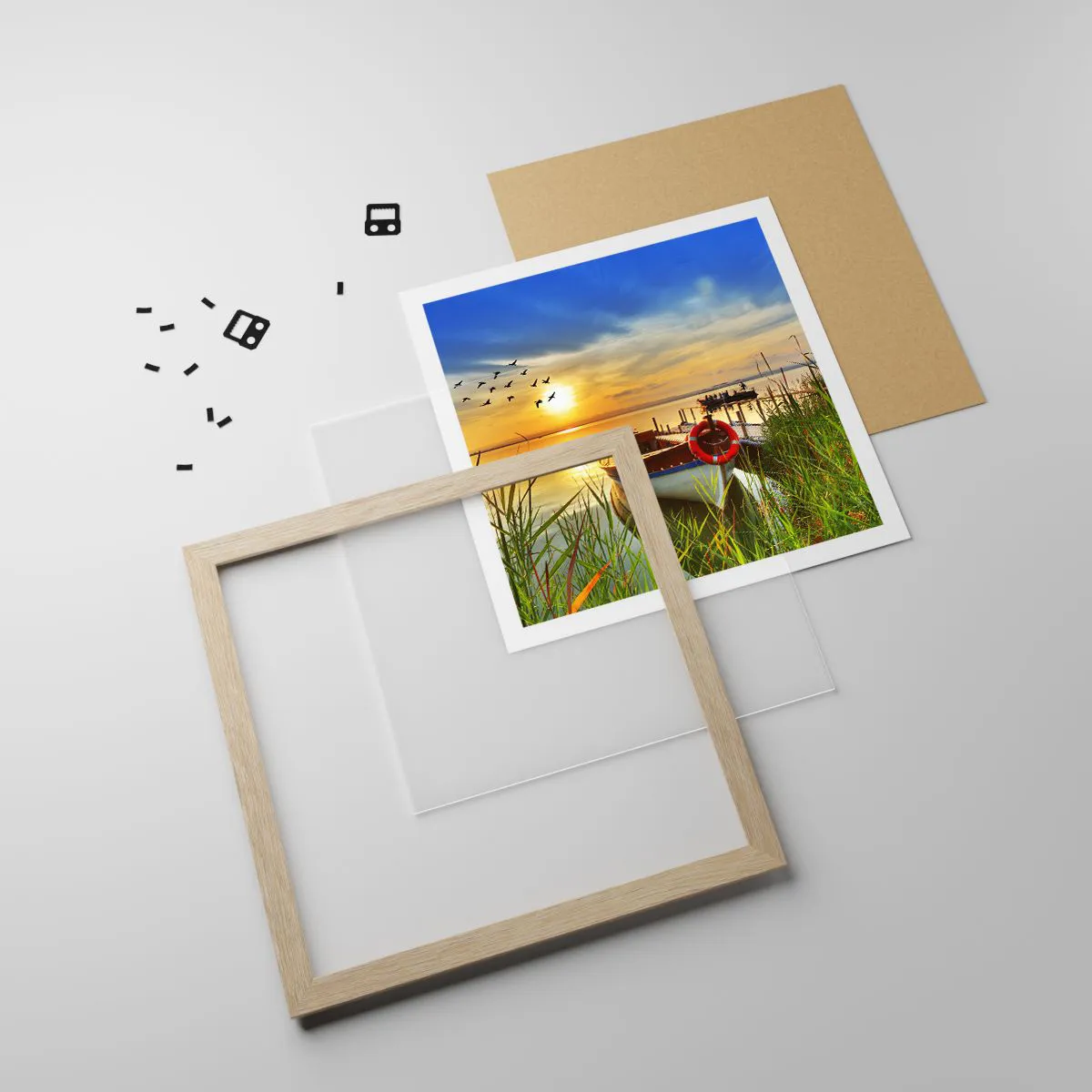 Poszter világos tölgy keretben - A kormoránok már repülnek el - 50x50 cm