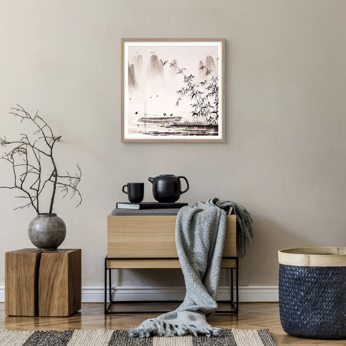 Poszter világos tölgy keretben - A rizsföldek csendje - 50x50 cm