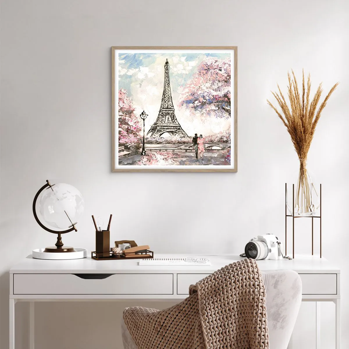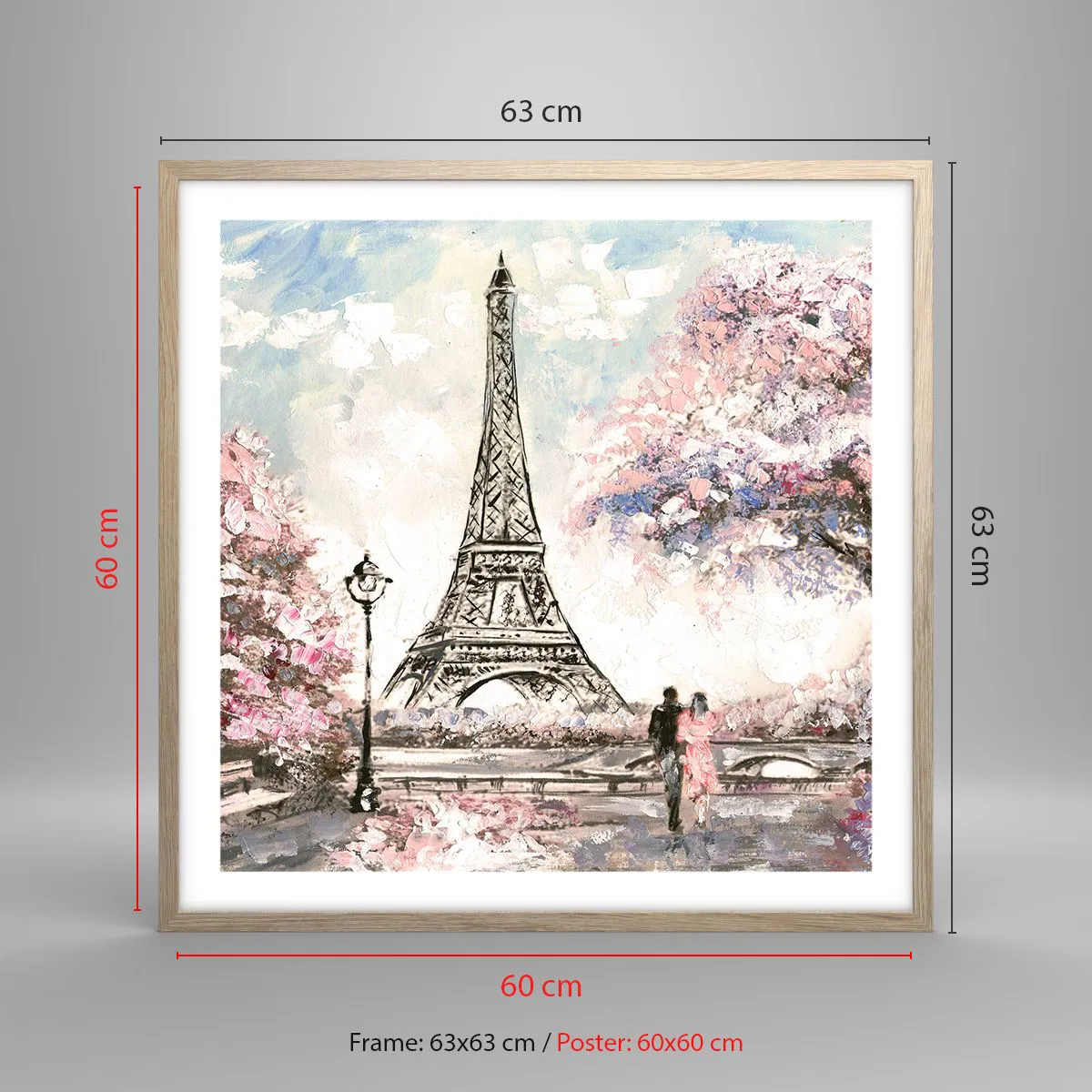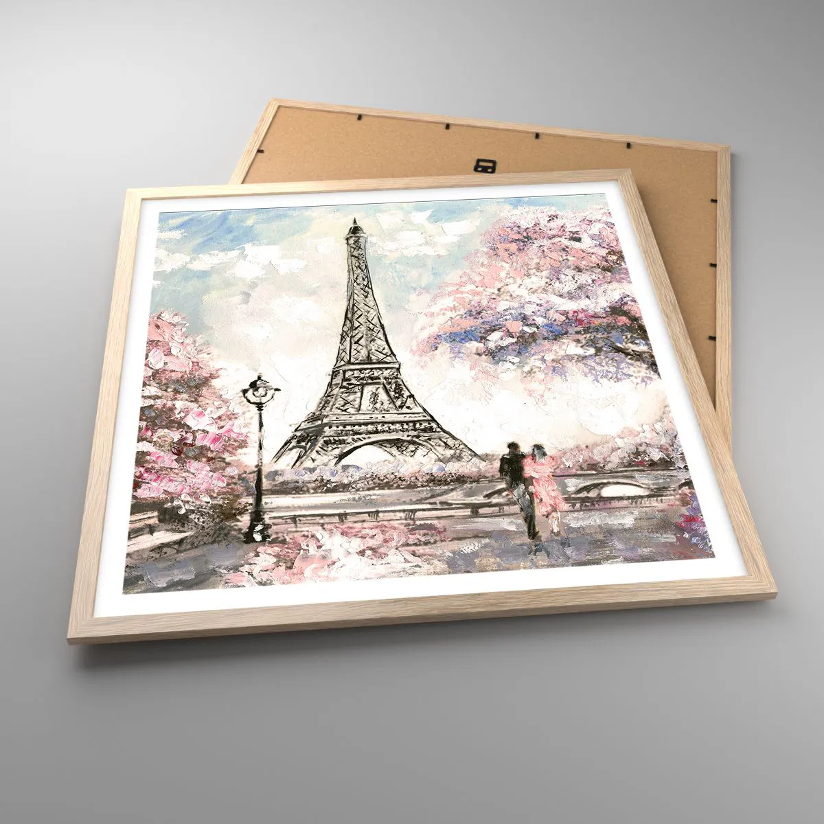 Poszter világos tölgy keretben - Áprilisi séta Párizsban - 60x60 cm