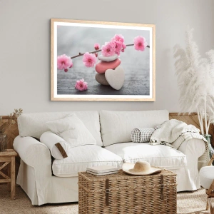 Poszter világos tölgy keretben - Boldogság a cseresznyevirággal - 60x60 cm