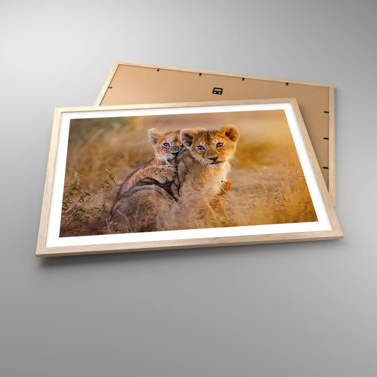 Poszter világos tölgy keretben - Ne zavarni! Szórakozunk - 70x50 cm