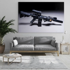 A világos háttér kontrasztot alkot a fegyver sötét színével, kiemelve annak formáját és szerkezetét. A festmény tökéletesen működik dekoratív elemként irodában, dolgozószobában vagy nappaliban, masszív, katonai stílust kölcsönözve a belső térnek. A bemutatott puska nemcsak az erő, hanem a kivételes mérnöki munka szimbóluma is, amely világszerte lenyűgözi az embereket.