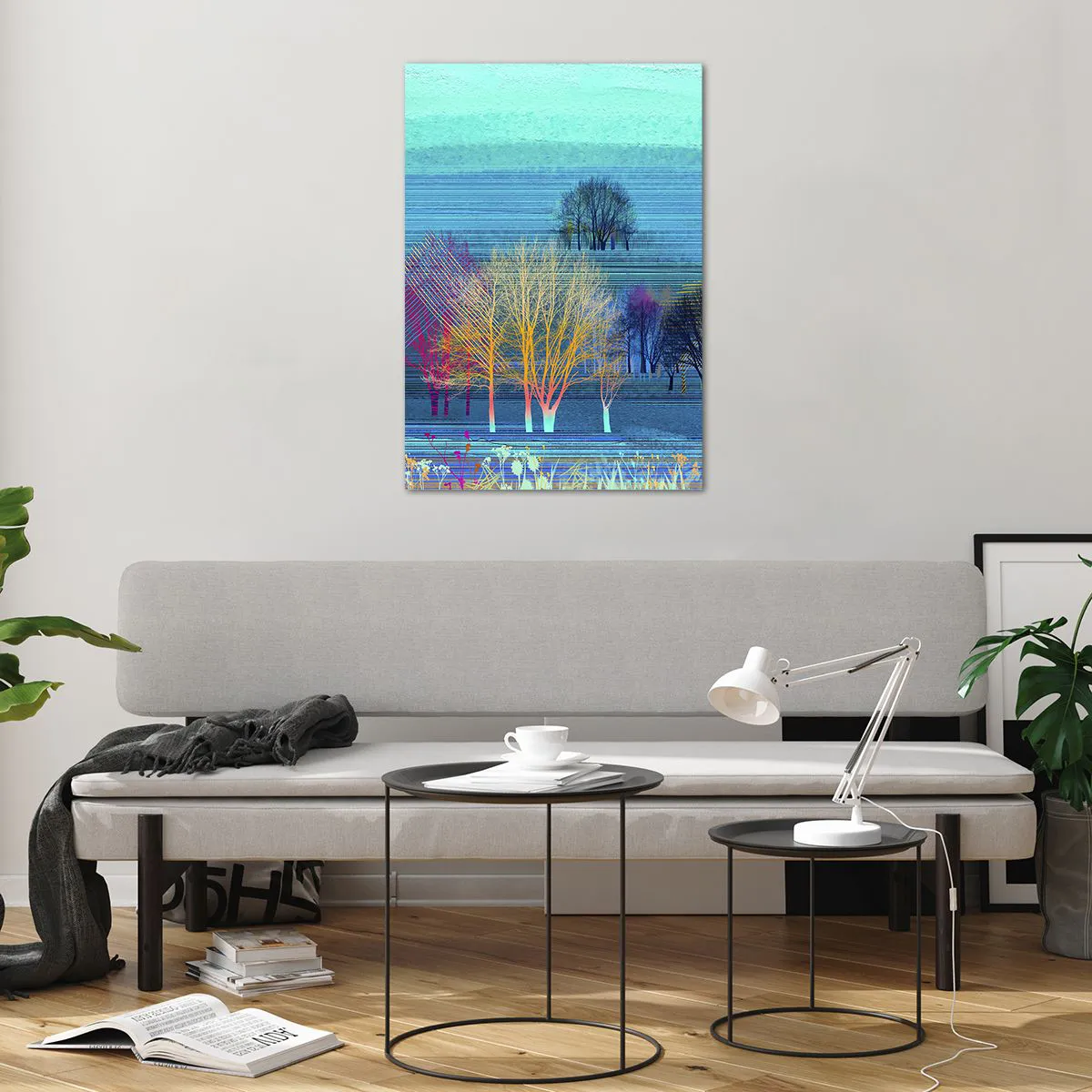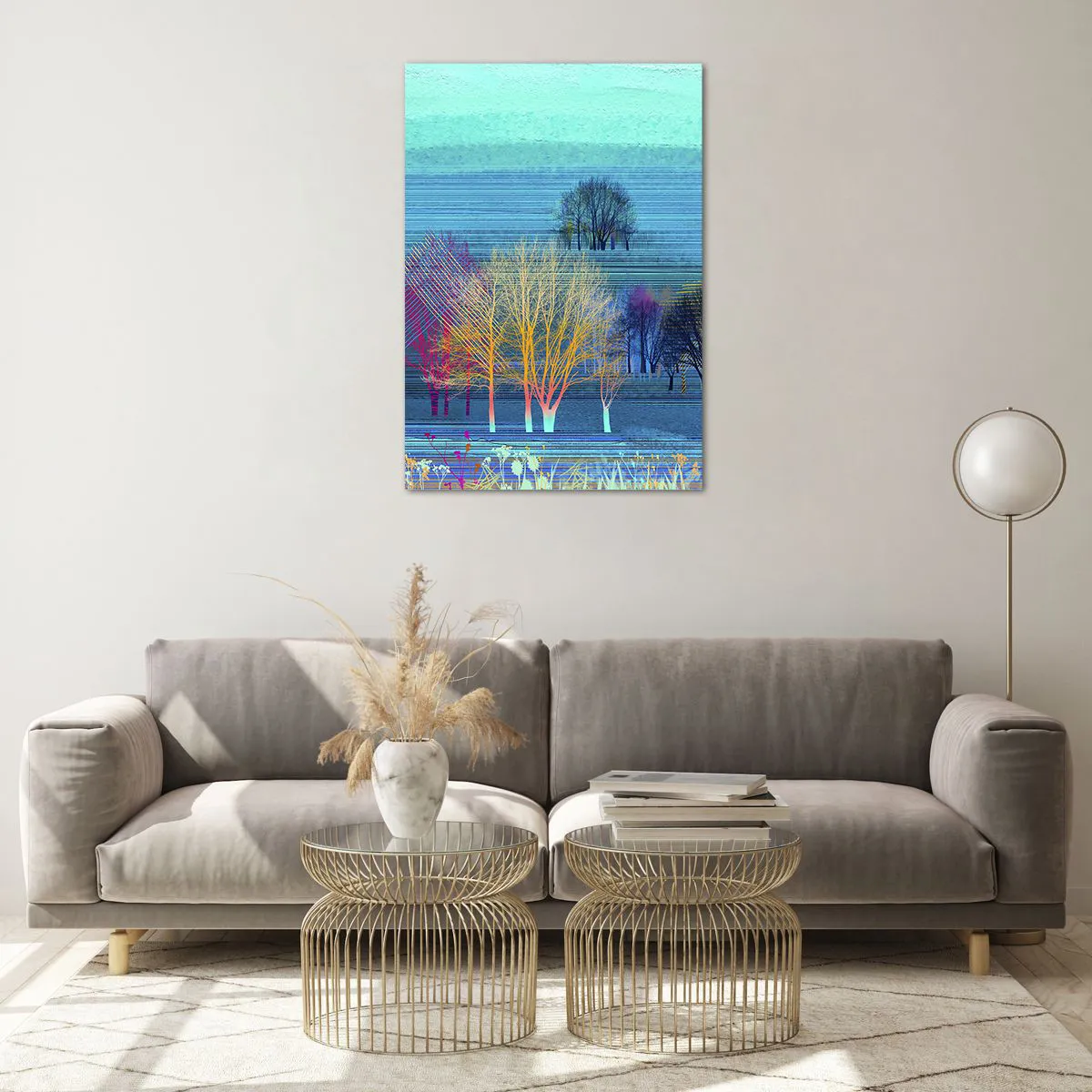 • Táj, Erdő, Absztrakt, Növénytan, tájak, természet, Irodába, dolgozószobába, étkezőbe, előszobába, nappaliba, hálószobába, Kékeszöld, Függőleges