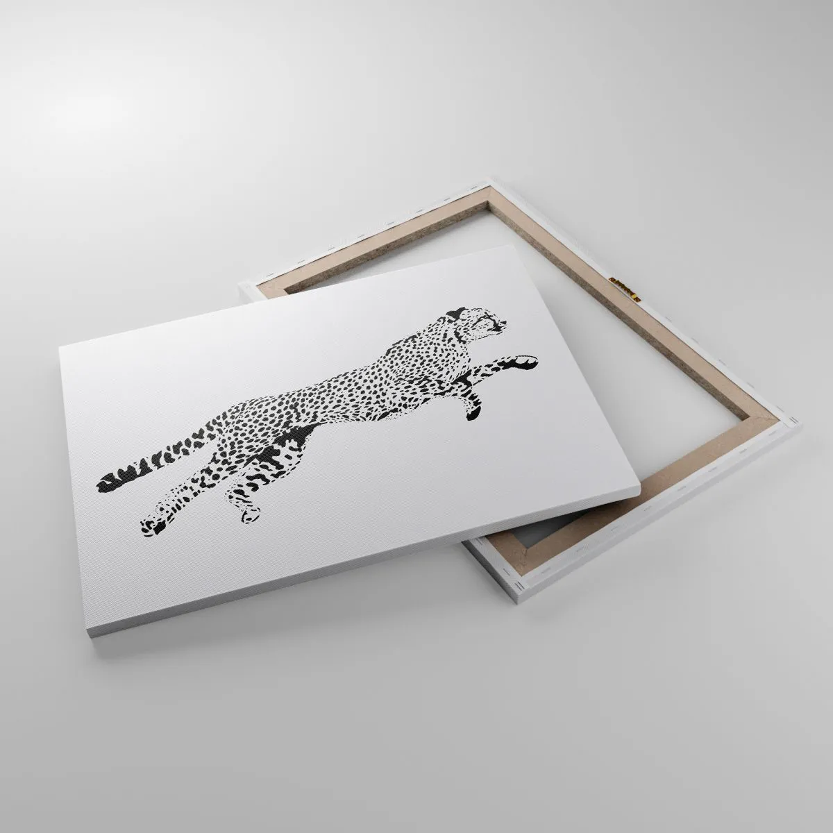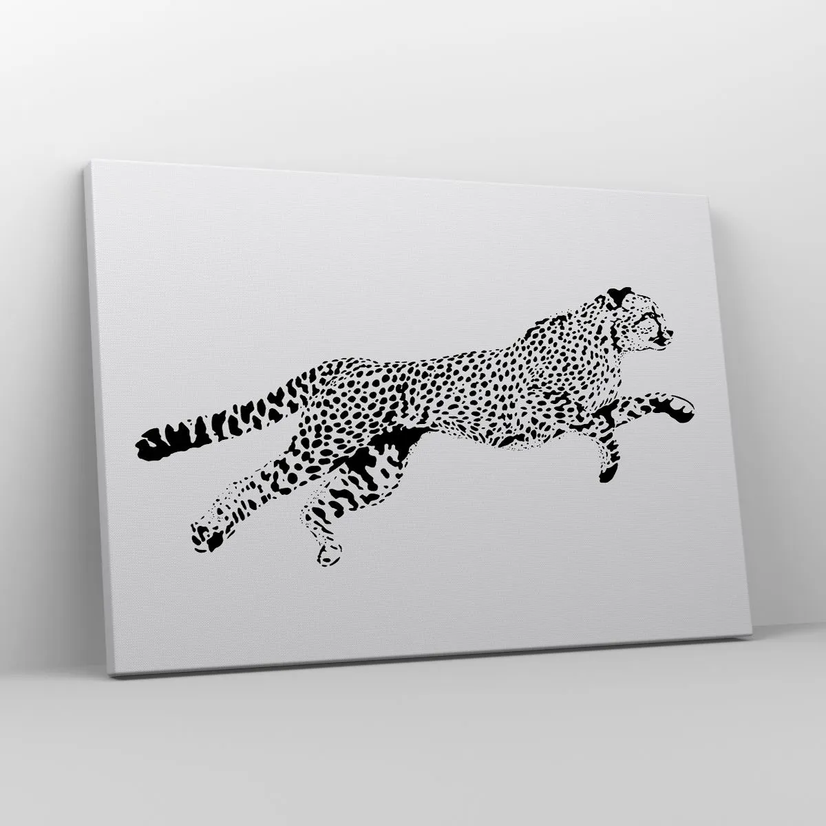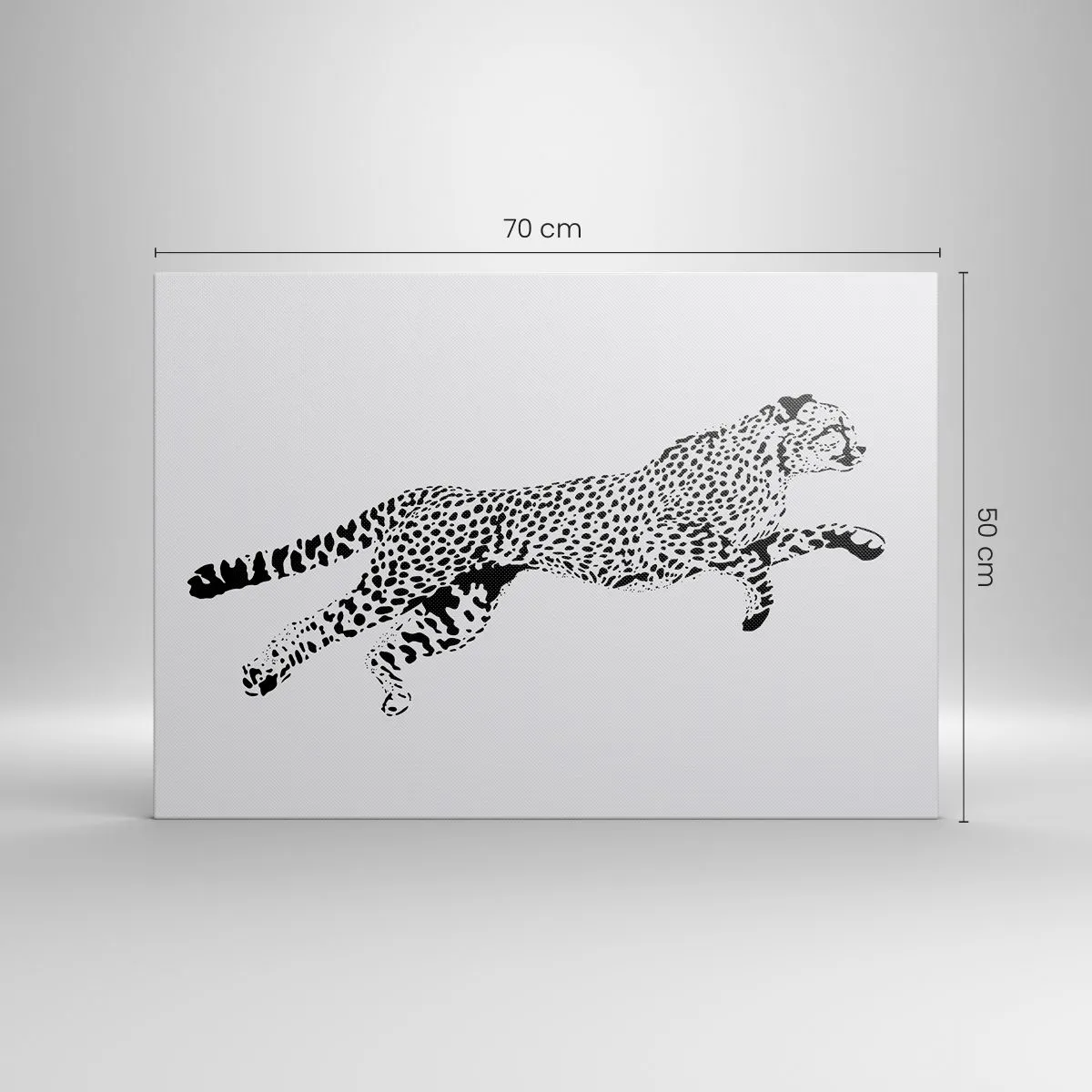 Vászonkép - Minimalista grafika egy mozgó gepárdról - 70x50cm - A leggyorsabb a Földön - Modern fali dekoráció nappalihoz és hálószobához ARTTOR