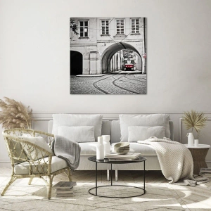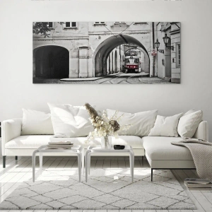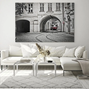 • Város, Villamos, Prága, Építészet, fekete-fehér, városok, autóipar, vintage és retro, Irodába, dolgozószobába, étkezőbe, előszobába, nappaliba, hálószobába, Szürke, fekete-fehér, Panoramikus