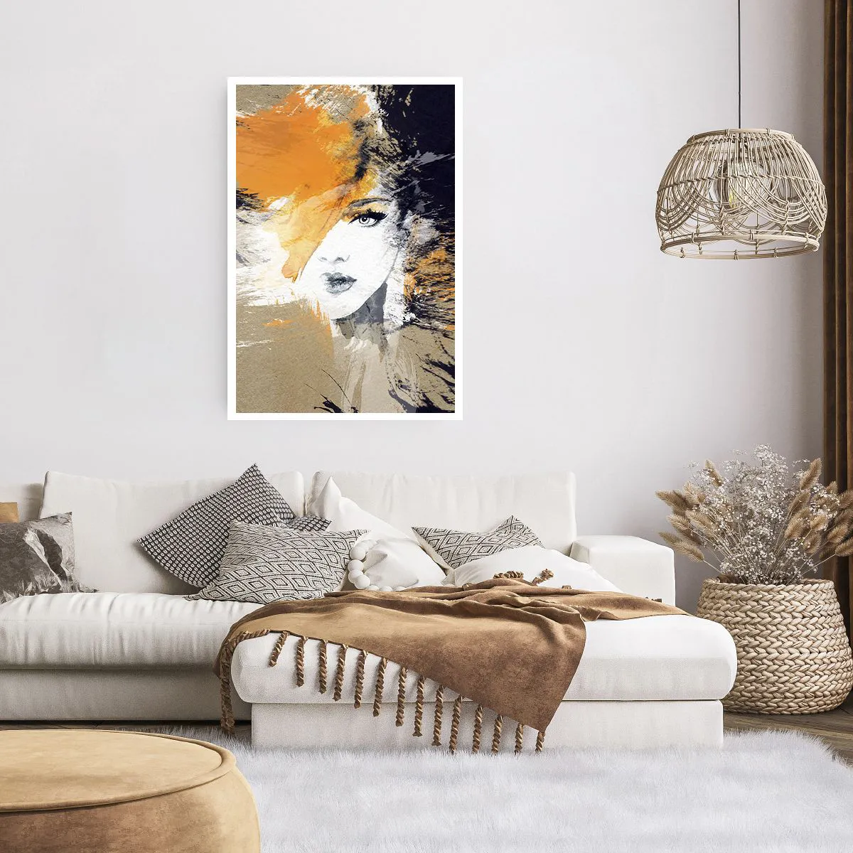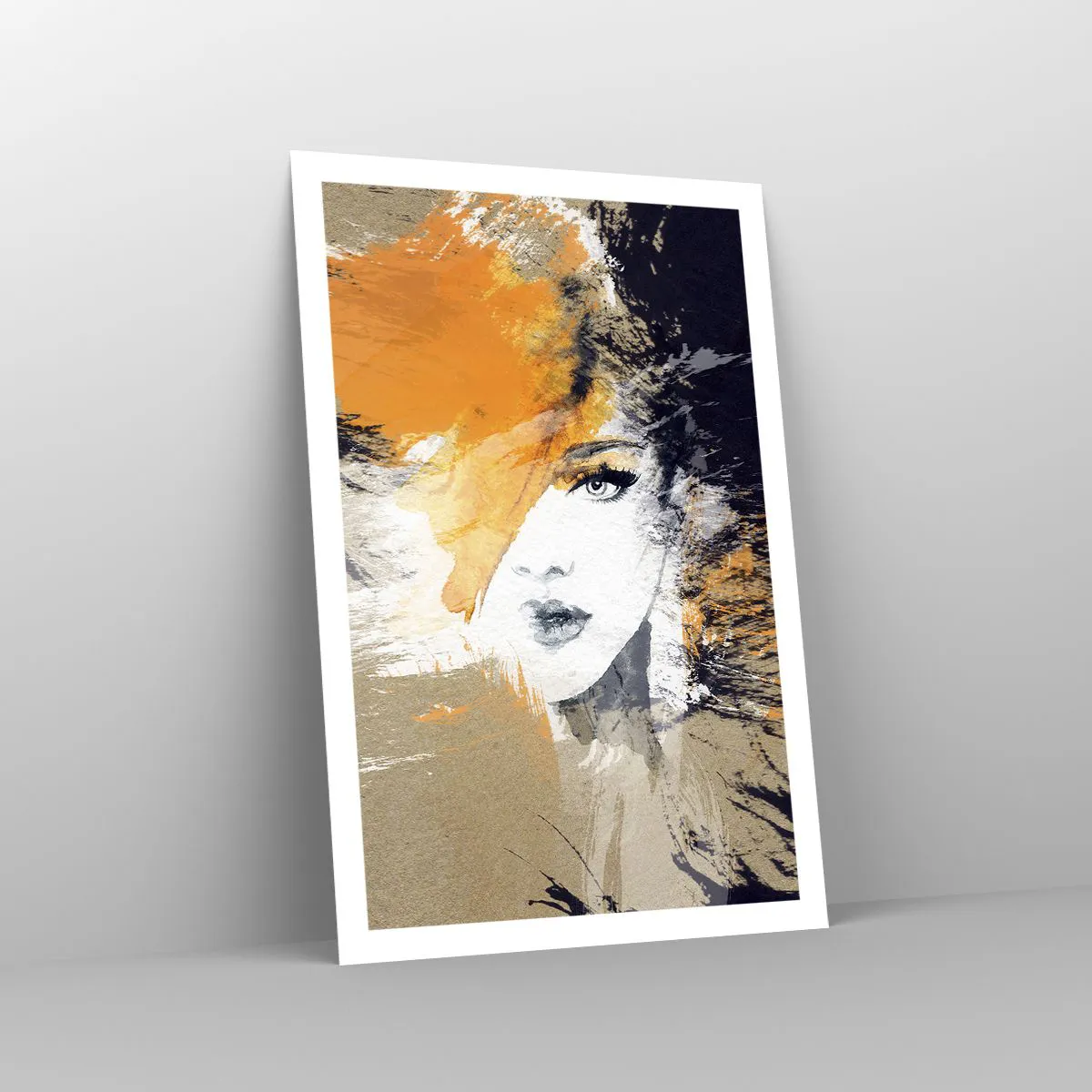 • Absztrakt, Női Arc, Nő, Emberek, divat, művészet, Irodába, dolgozószobába, étkezőbe, előszobába, nappaliba, hálószobába, , Fekete, narancs, Függőleges