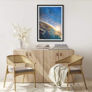 Poszter fehér keretben - Föld napkeltekor az űrből nézve - 50x70cm - Tekintsünk magunkra távolról - Modern fali dekoráció nappalihoz és hálószobához ARTTOR