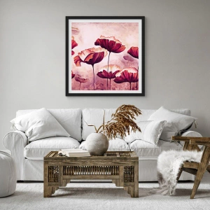 Poszter fehér keretben - Piros és fehér szirom - 30x30 cm
