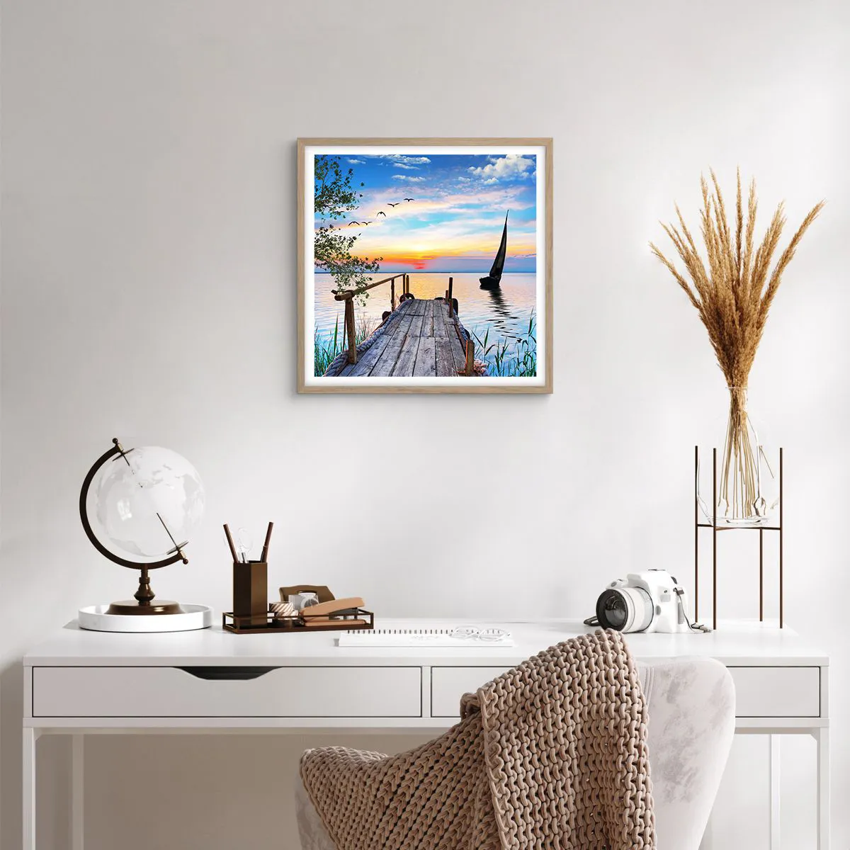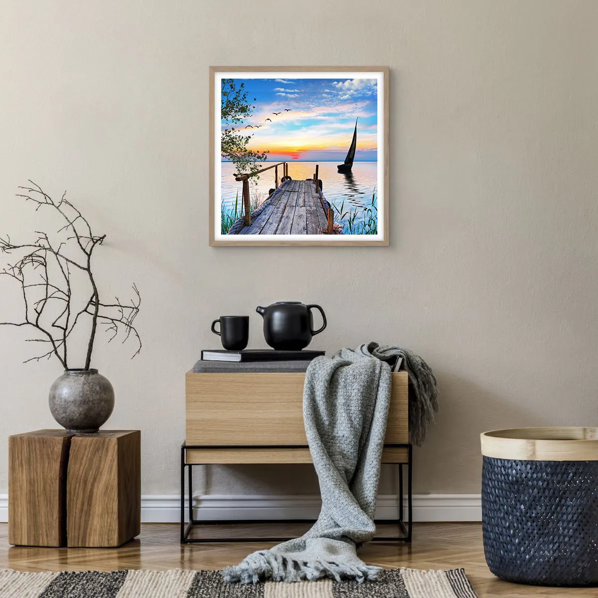 Poszter világos tölgy keretben - Kellemes este - 50x50 cm