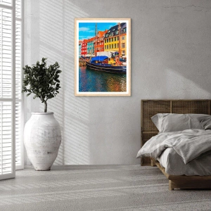 Poszter világos tölgy keretben - Örömteli rakpart - 91x61 cm