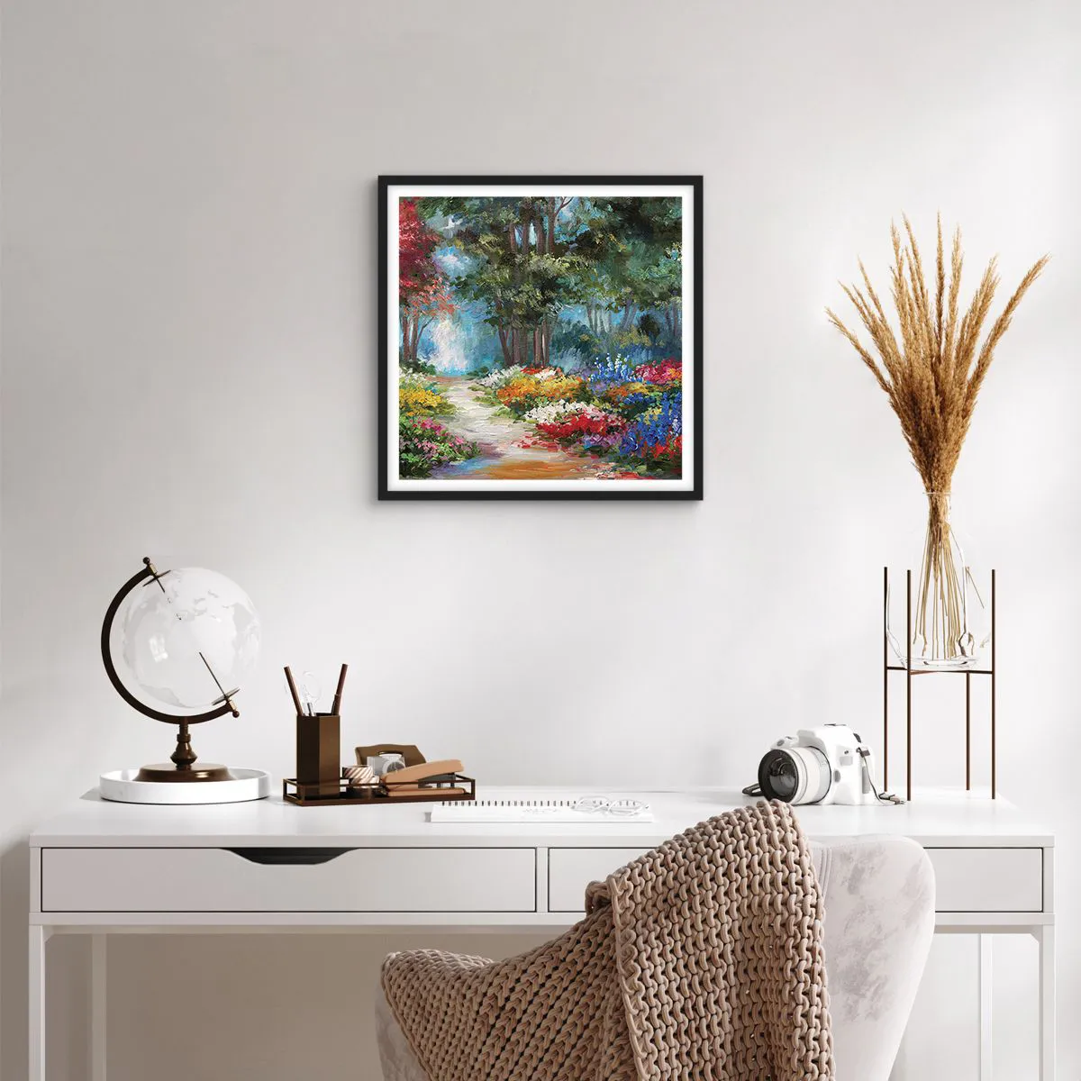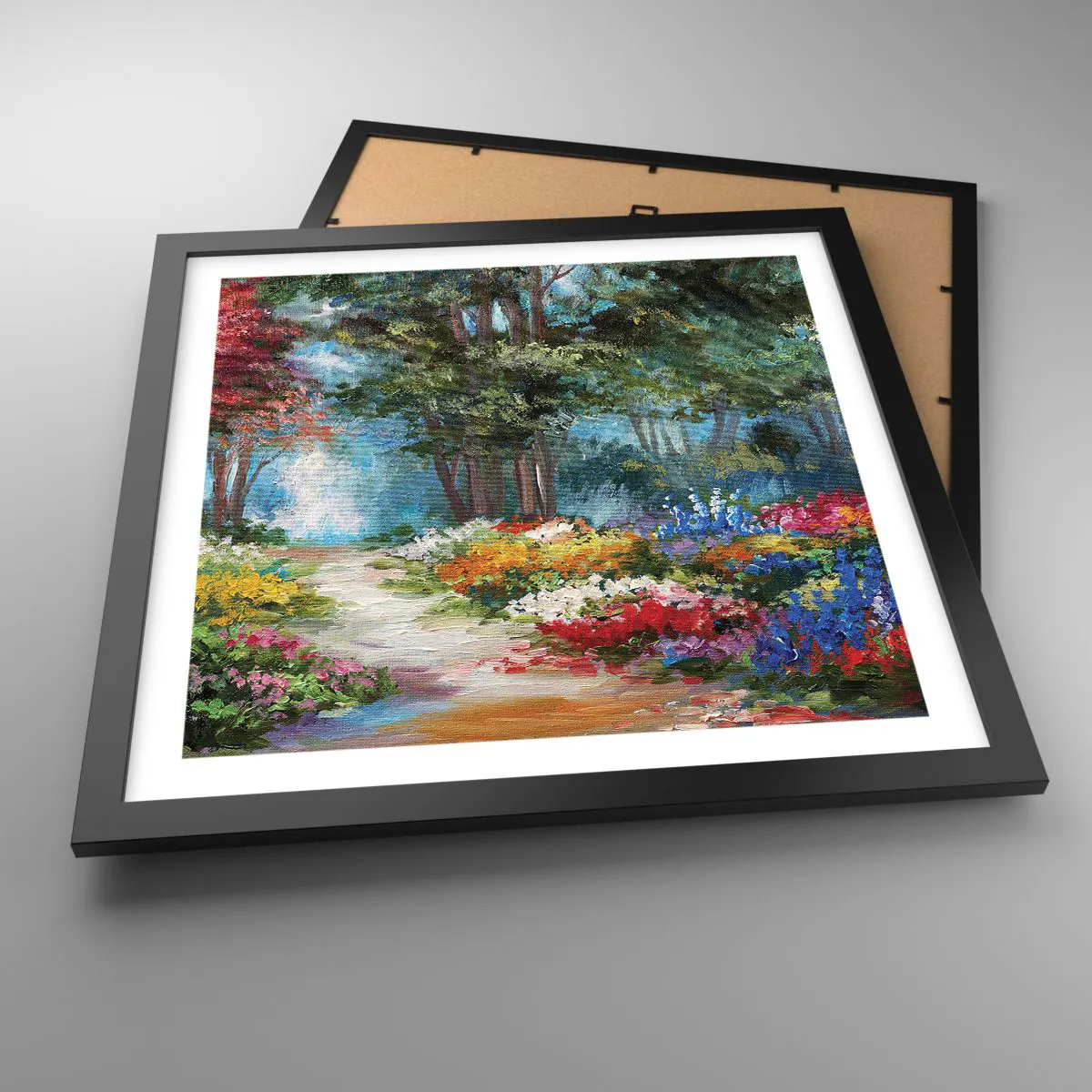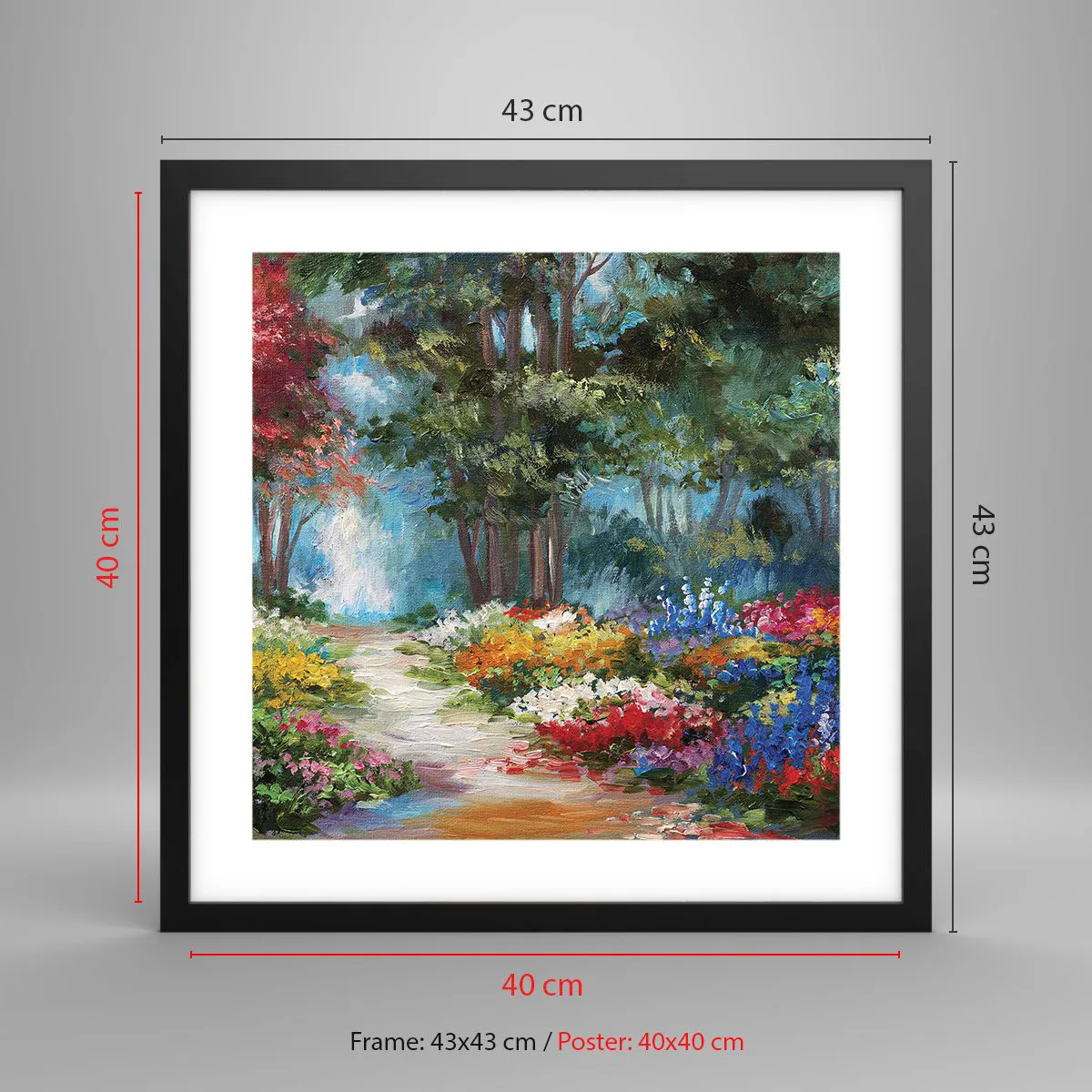 Poszter fehér keretben - Erdei kert, virágos erdő - 40x40 cm