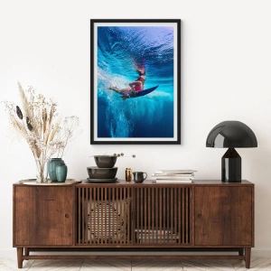 - A poszter egy szörföst ábrázol, aki az óceán mélyén merül el, türkizkék vízzel körülvéve. A színek egyedi dinamikája és harmóniája tökéletessé teszi a képet a modern belső terekbe.