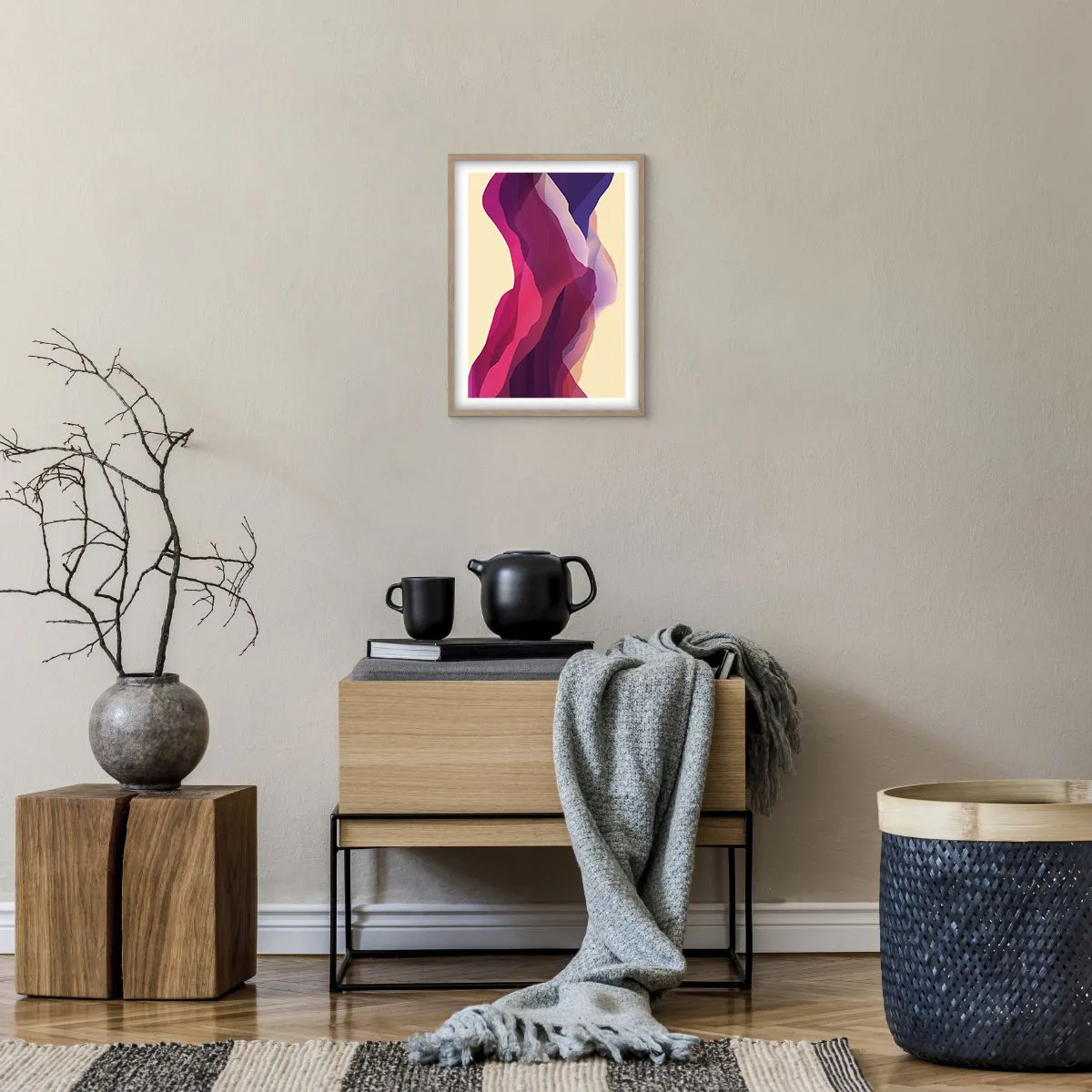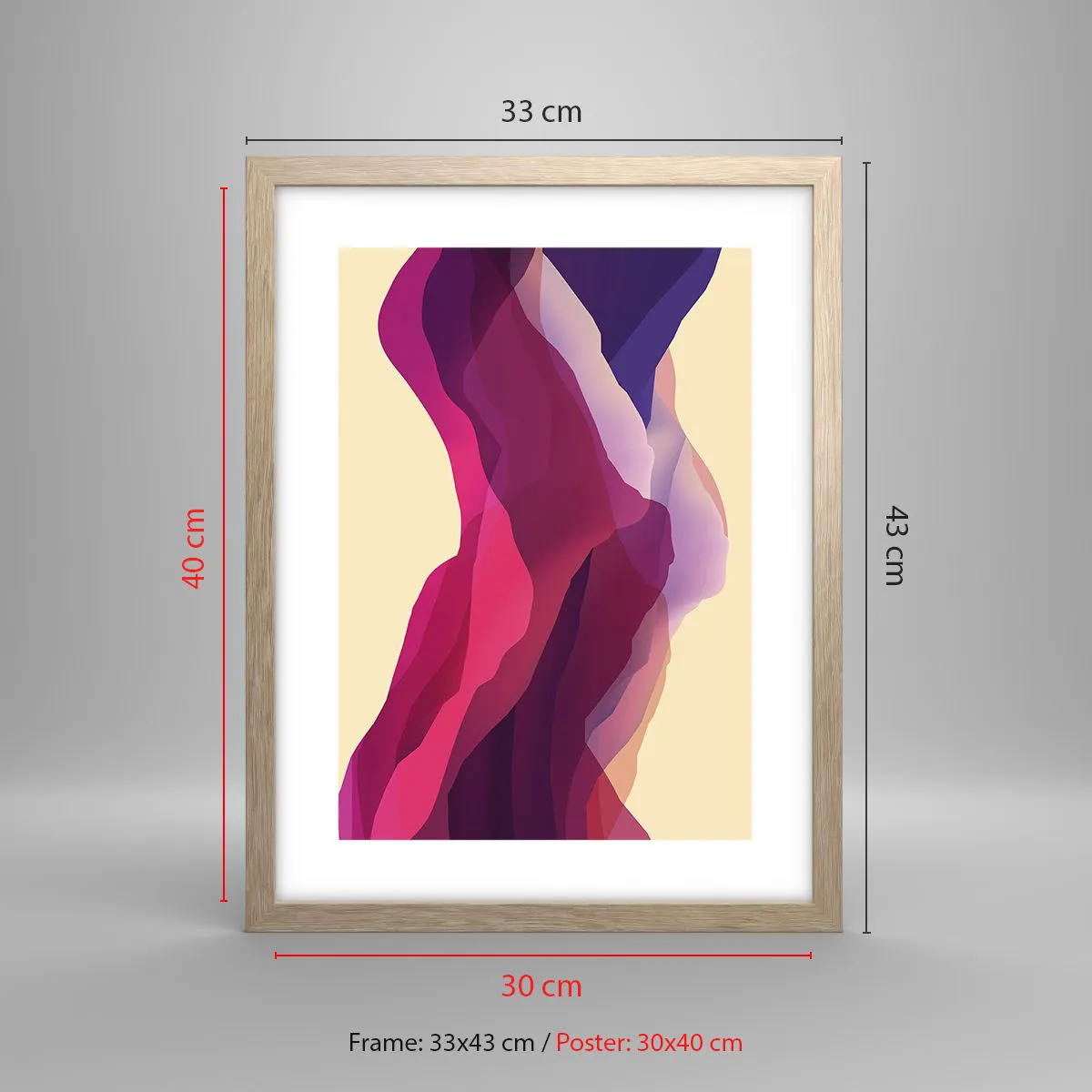 Poszter világos tölgy keretben - Bíbor hullámok - 30x40 cm