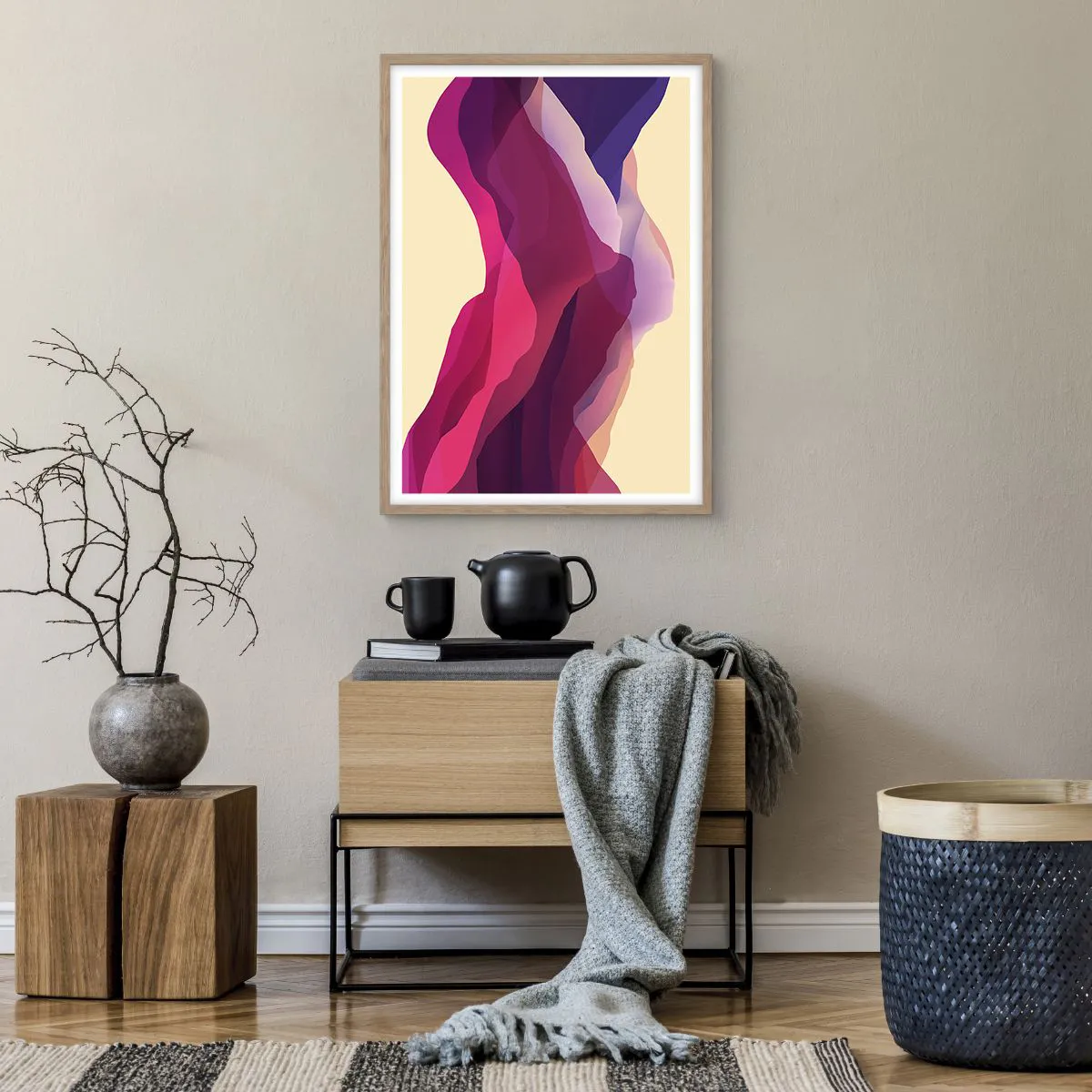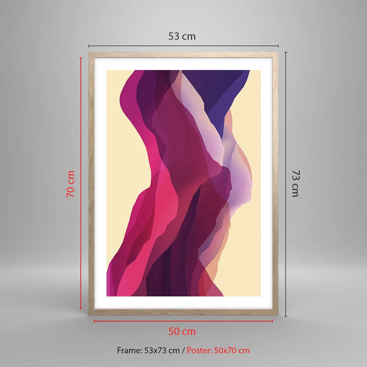 Poszter világos tölgy keretben - Bíbor hullámok - 50x70 cm