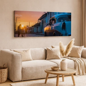 - Retro autó, építészet, Kuba, Építészet, városok, autóipar, utazás, Irodába, dolgozószobába, étkezőbe, előszobába, nappaliba, hálószobába, Kék, narancs, Panoramikus