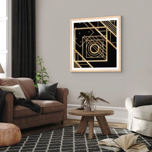 Poszter világos tölgy keretben - Arany geometria - 30x40 cm