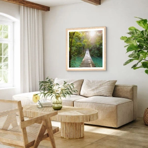Poszter világos tölgy keretben - Az azúrkék vízen át az azúrkék erdőbe - 91x61 cm