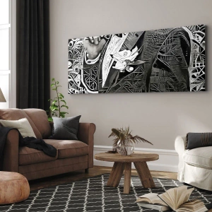 A vászon a keretre van feszítve. Az oldalak és a szélek nyomtatva vannak, a kép folytatását alkotva. A kép készen áll a falra akasztásra. Minden termékhez tartozik egy, a kerethez rögzített akasztó és egy rögzítőkészlet (csavar + dübel).