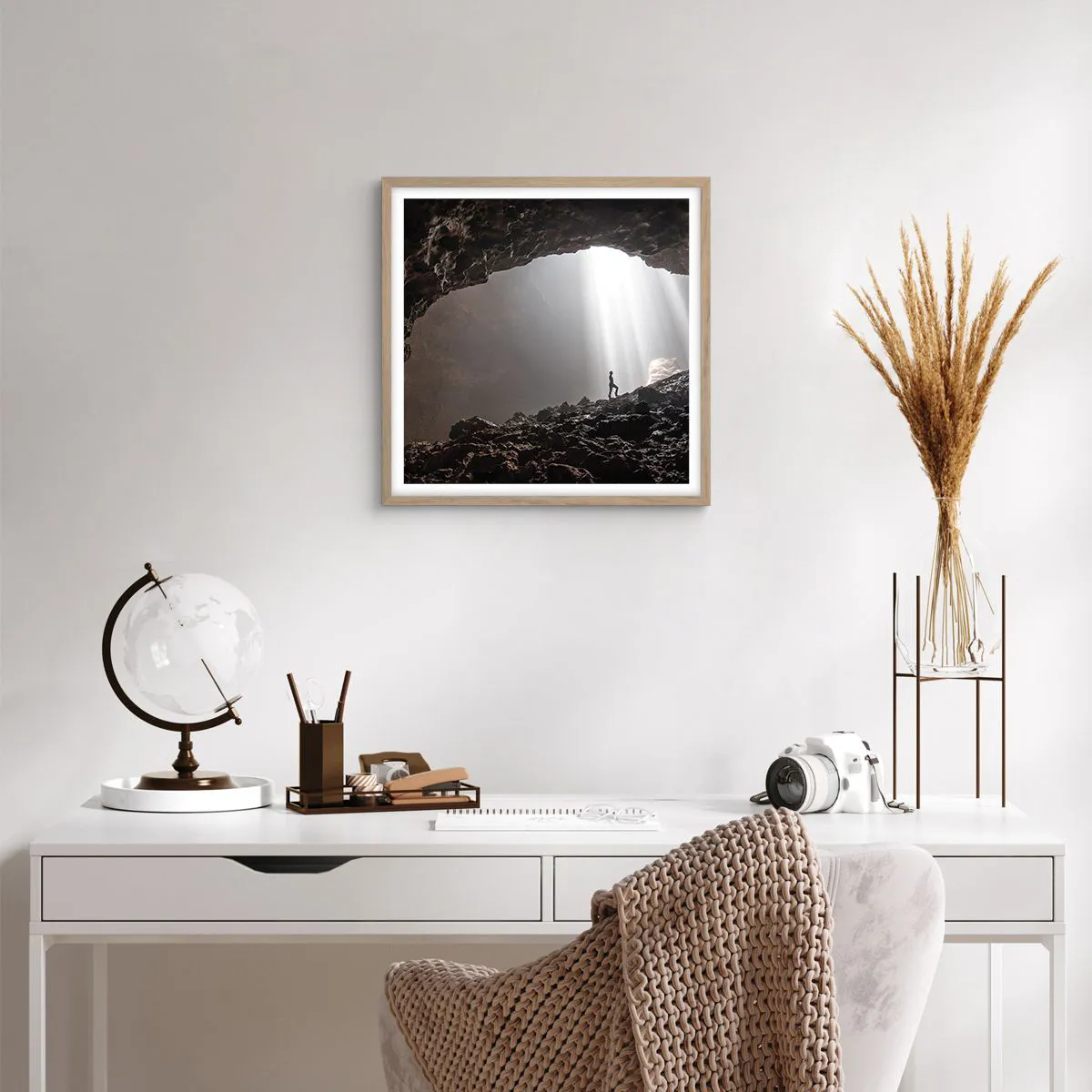 Poszter világos tölgy keretben - A fényes barlang - 50x50 cm