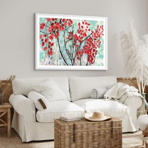 Poszter fekete keretben - Fa skarlát színben - 50x50 cm