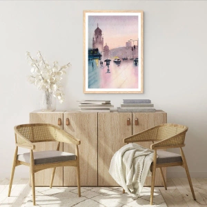 Poszter világos tölgy keretben - Az esős ködben - 91x61 cm