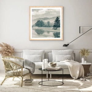 Poszter világos tölgy keretben - A tó még alszik - 91x61 cm