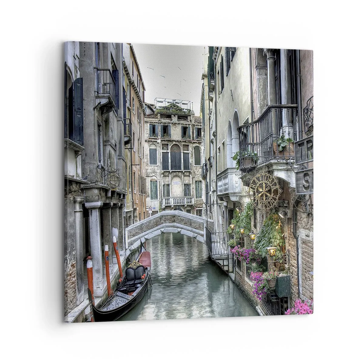 A vászon a keretre van feszítve. Az oldalak és a szélek nyomtatva vannak, a kép folytatását alkotva. A kép készen áll a falra akasztásra. Minden termékhez tartozik egy, a kerethez rögzített akasztó és egy rögzítőkészlet (csavar + dübel).