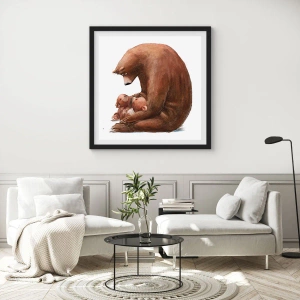 - Ez a bájos poszter egy anyamedvét ábrázol, amint két kismackót ölel. Ez a szeretettel és gyengédséggel teli jelenet tökéletes egy gyerekszobába, béke és biztonság légkörét teremtve.