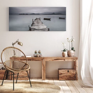 A festmény színei visszafogottak, a szürke és a fehér dominál, így könnyen illeszkedik különféle belső stílusokba. A kompozíció minimalista jellege békét és egyszerűséget áraszt, tökéletesen megragadva egy vízparti reggel hangulatát.