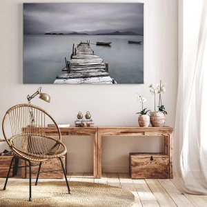 - „Holnap mehetsz” című festmény egy nyugodt tóhoz vezető fából készült mólót ábrázol szürke, hangulatos környezetben. Finom és harmonikus kompozíció, amely tökéletes a nyugalommal és elmélkedéssel teli enteriőrökbe.