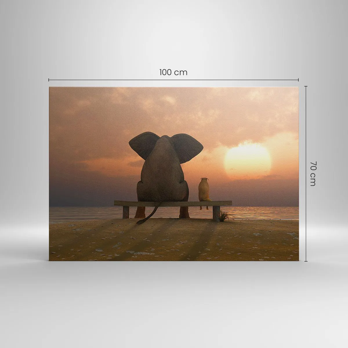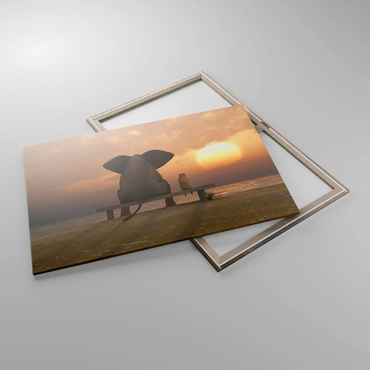 A vászon a keretre van feszítve. Az oldalak és a szélek nyomtatva vannak, a kép folytatását alkotva. A kép készen áll a falra akasztásra. Minden termékhez tartozik egy, a kerethez rögzített akasztó és egy rögzítőkészlet (csavar + dübel).
