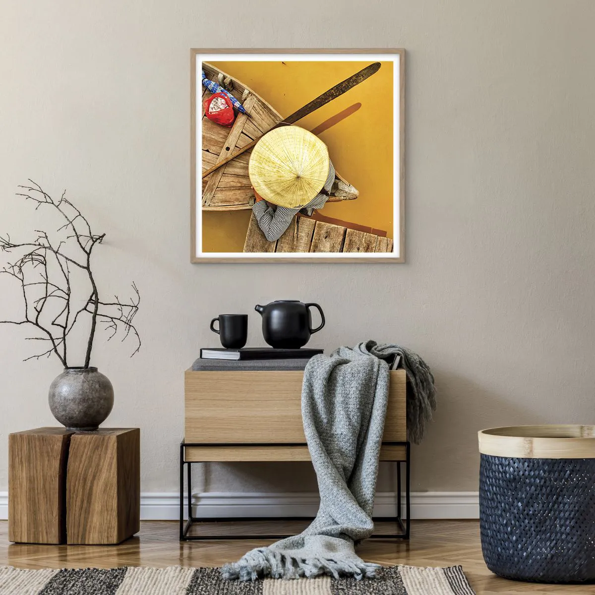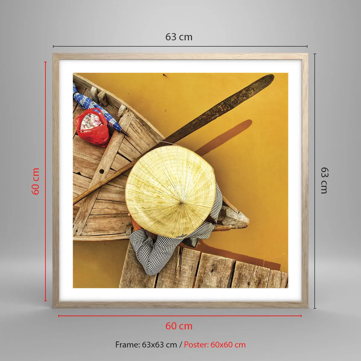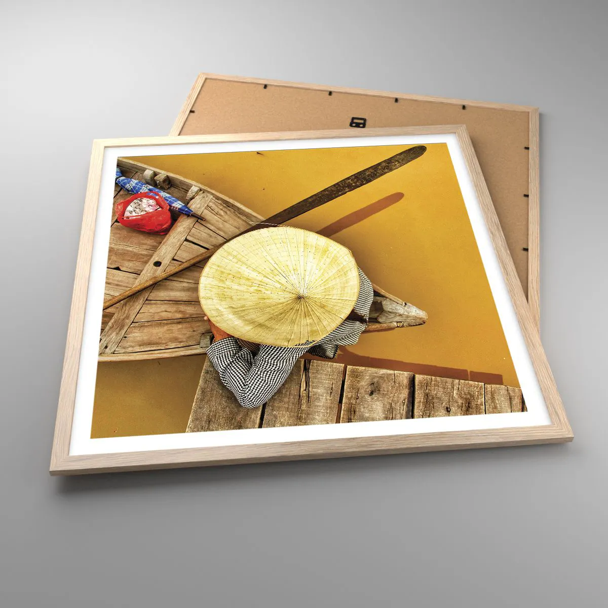 Poszter világos tölgy keretben - Élet a Sárga-folyón - 60x60 cm