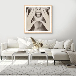 Poszter világos tölgy keretben - Jövök már! - 40x40 cm