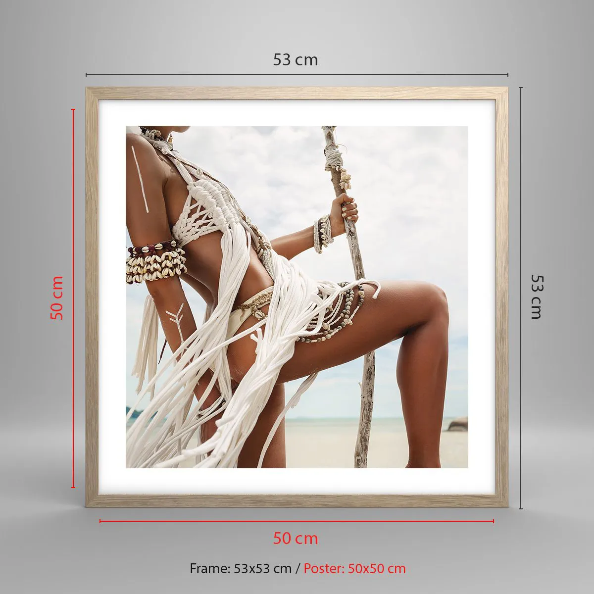 Poszter világos tölgy keretben - A nap papnője - 50x50 cm