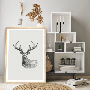 Poszter világos tölgy keretben - Szarvas kubista stílusban - 40x40 cm