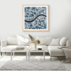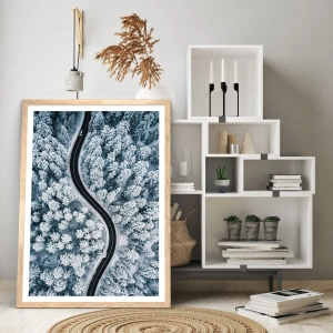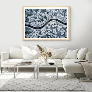 Poszter világos tölgy keretben - A téli erdőn - 70x100 cm