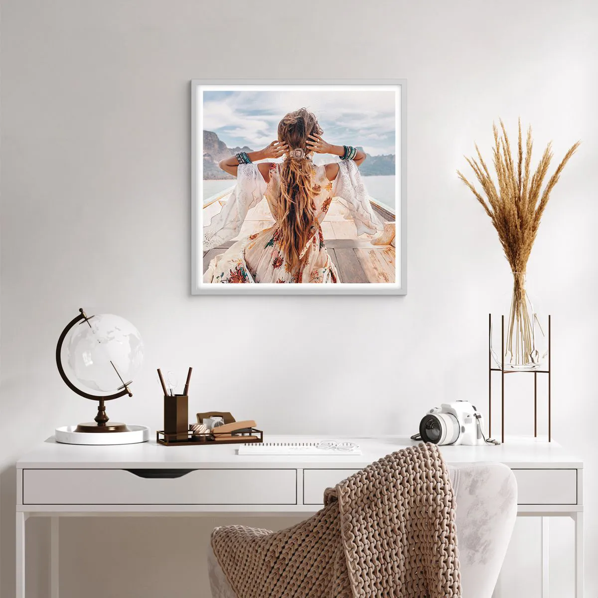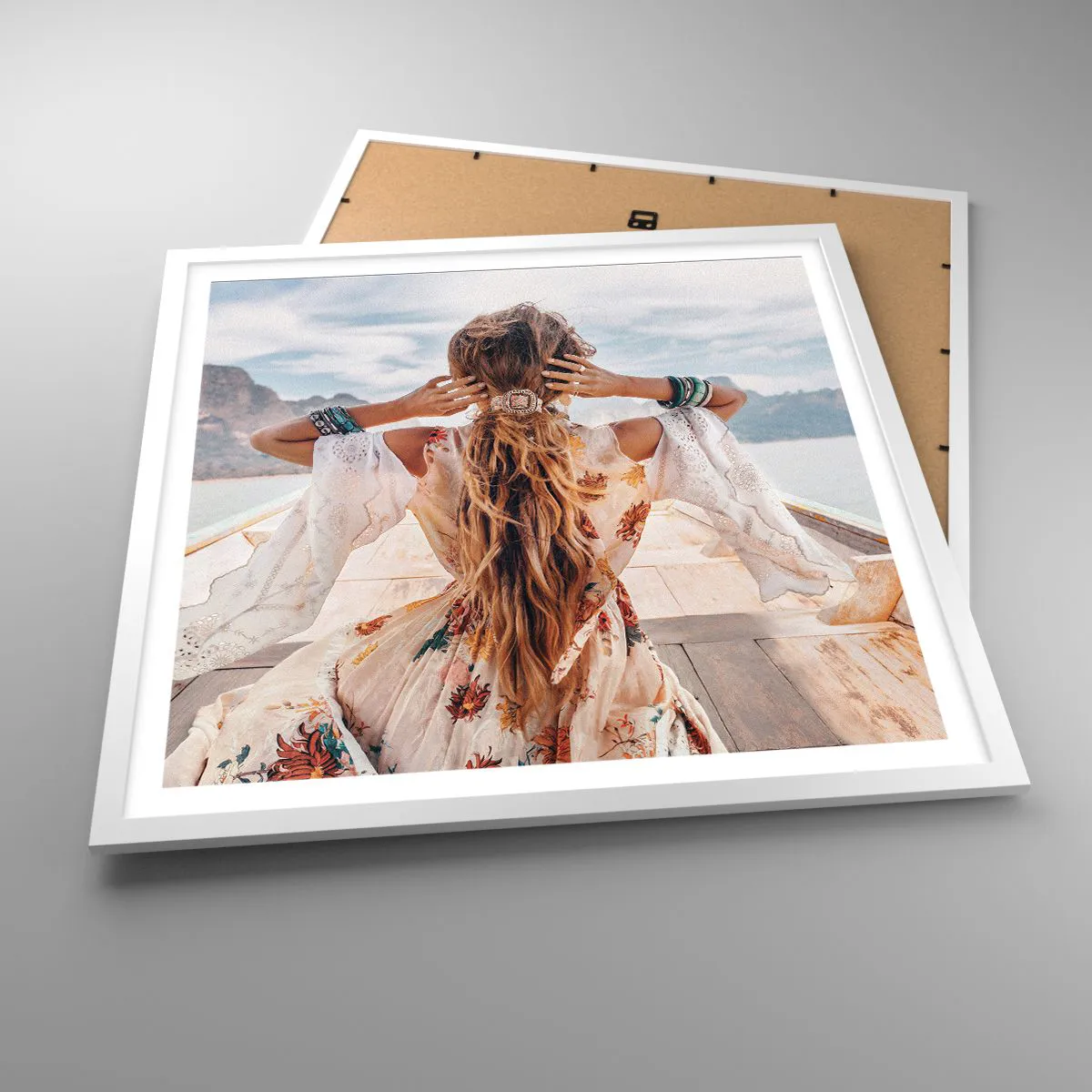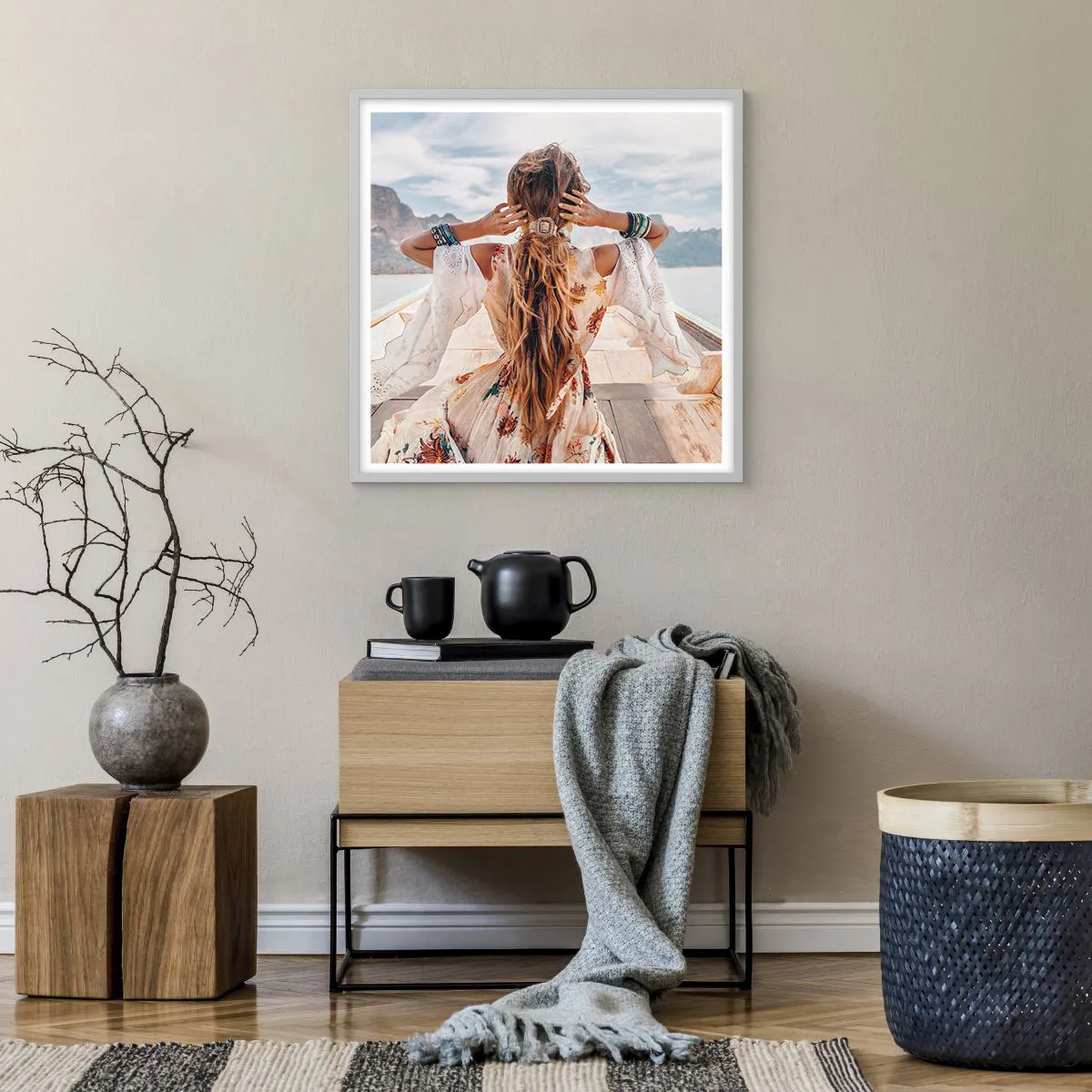 • Táj, Nő a hajón, Boho, Emberek, divat, utazás, Az étkezőbe, az előszobába, a nappaliba, a hálószobába, Fehér, barna, szürke, Négyzetes
