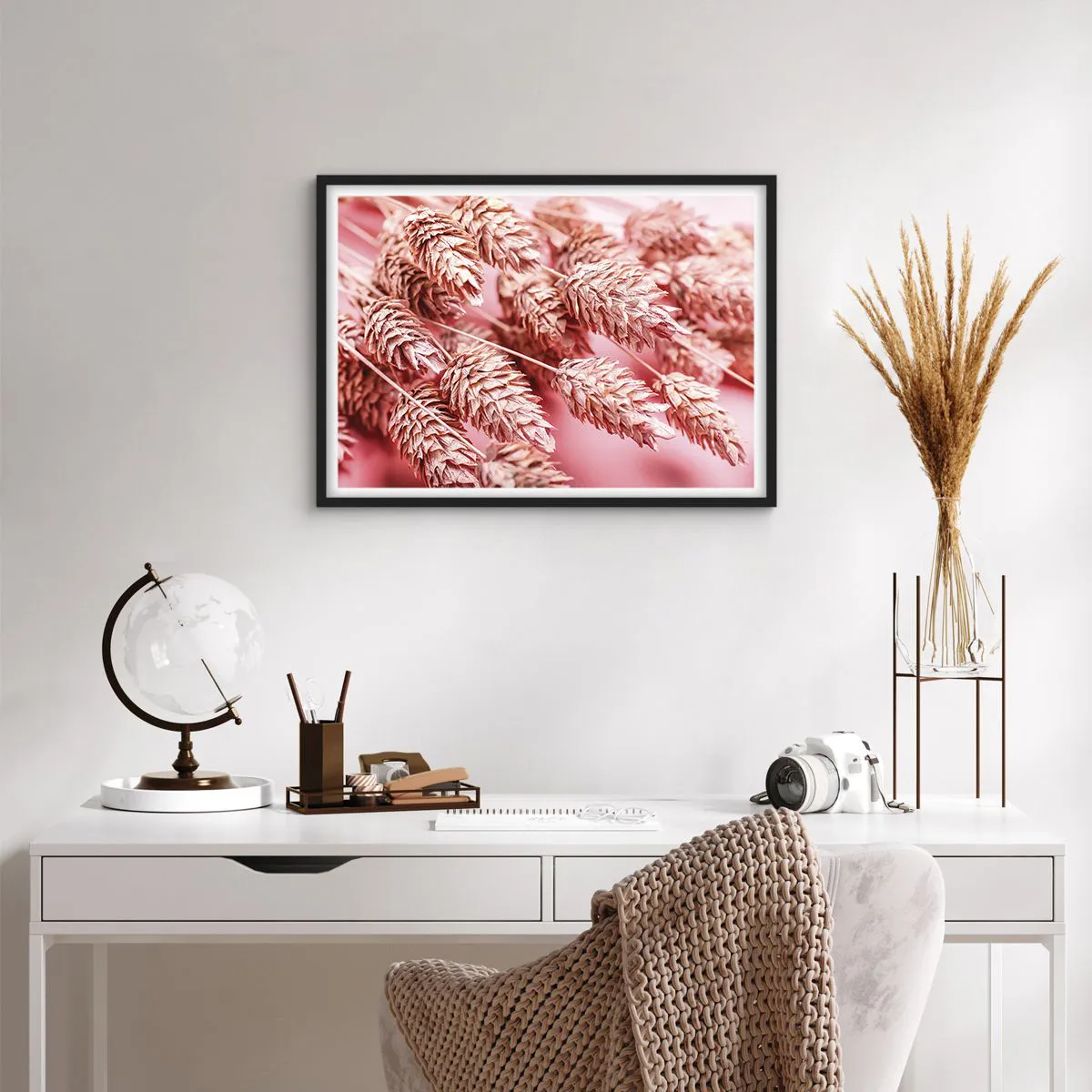 Poszter fehér keretben - Rózsaszín virágos kaszkád - 70x50 cm