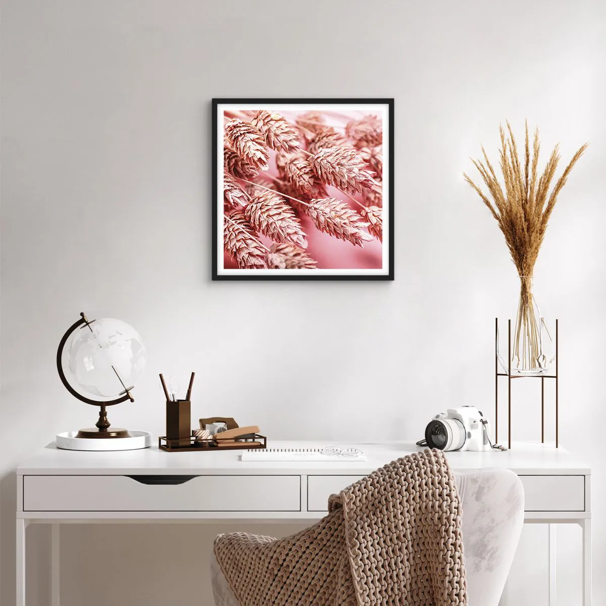 Poszter fehér keretben - Rózsaszín virágos kaszkád - 40x40 cm