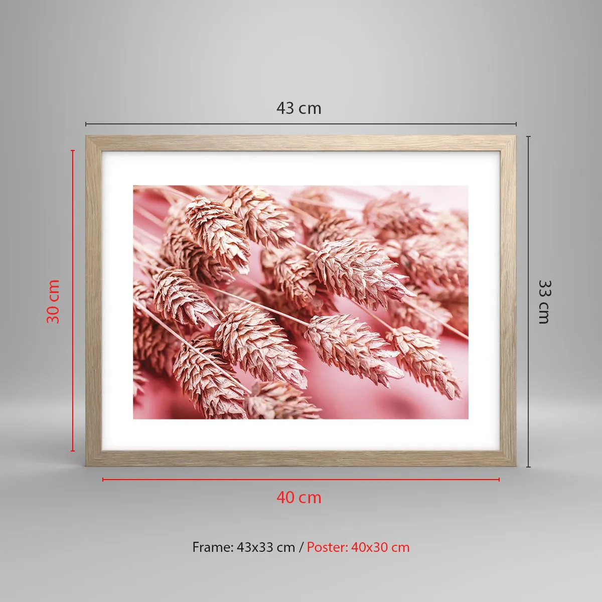 Poszter világos tölgy keretben - Rózsaszín virágos kaszkád - 40x30 cm