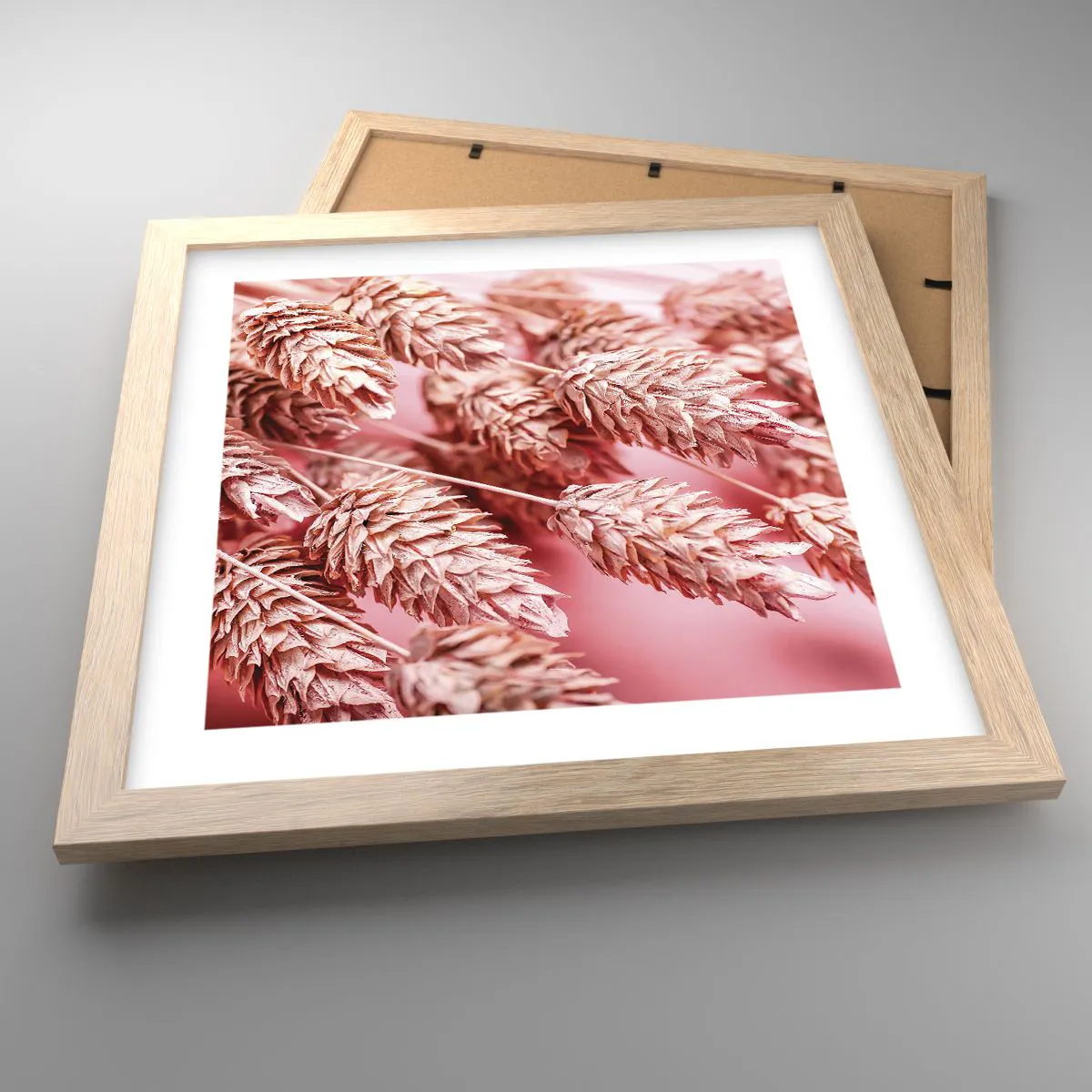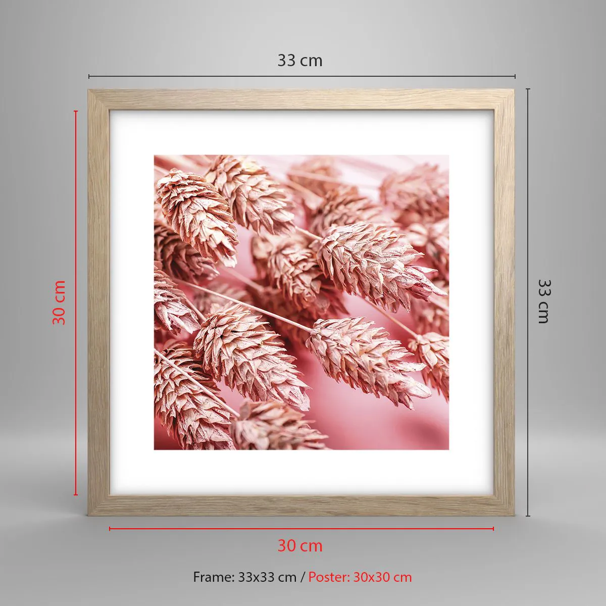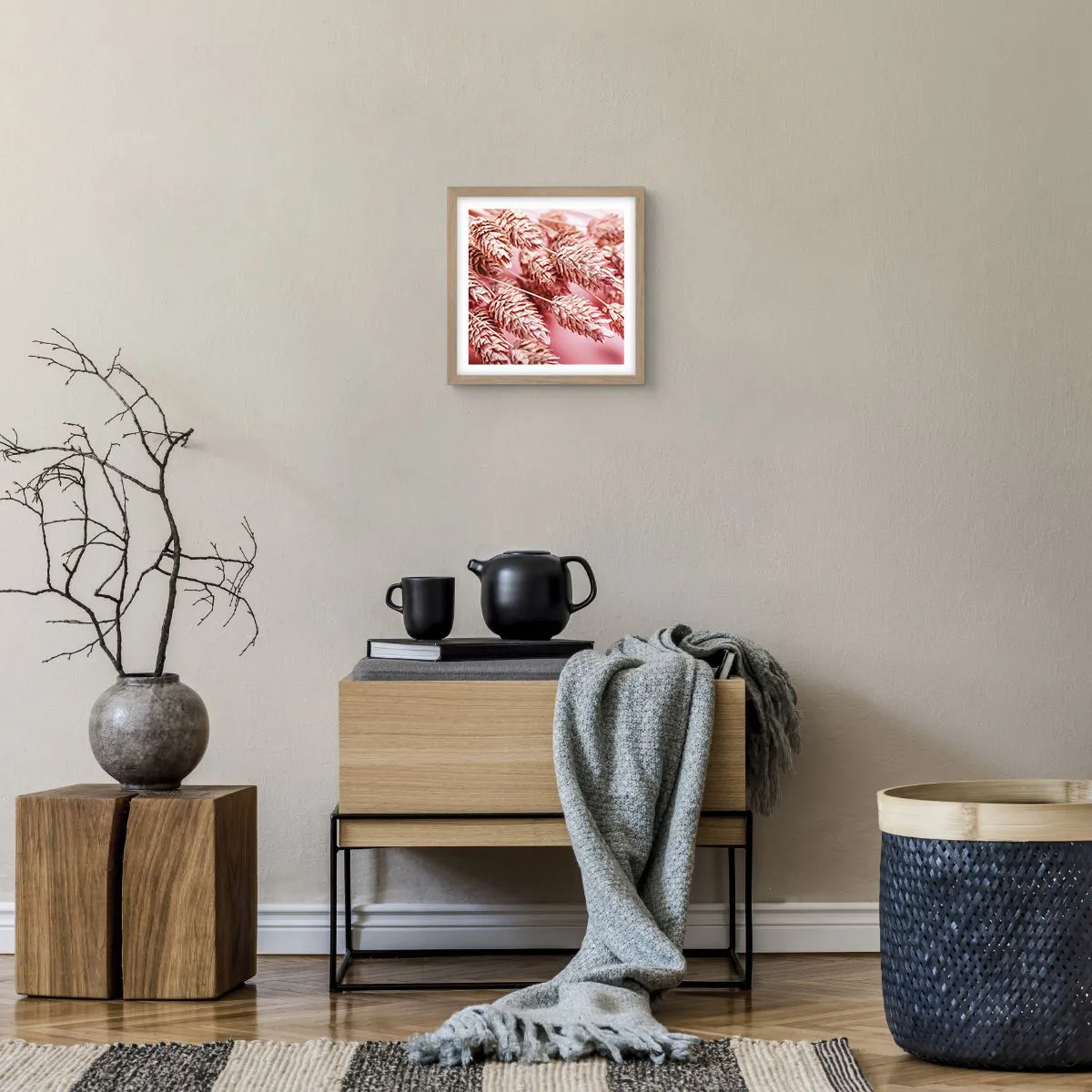 Poszter világos tölgy keretben - Rózsaszín virágos kaszkád - 30x30 cm