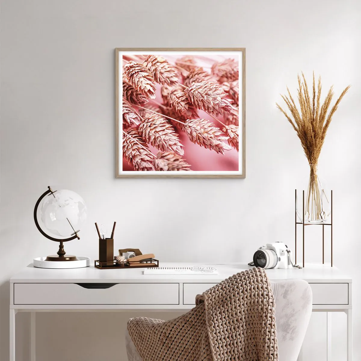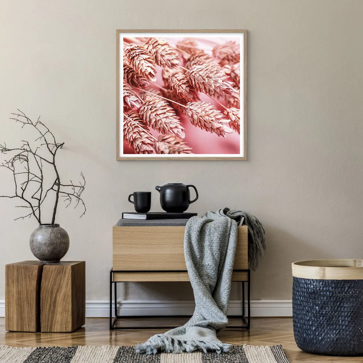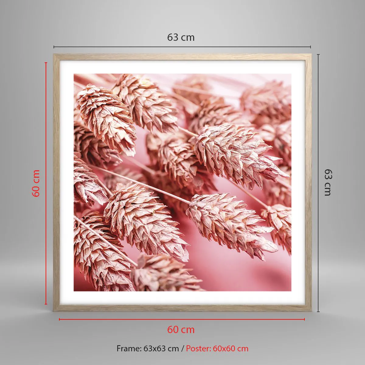 Poszter világos tölgy keretben - Rózsaszín virágos kaszkád - 60x60 cm