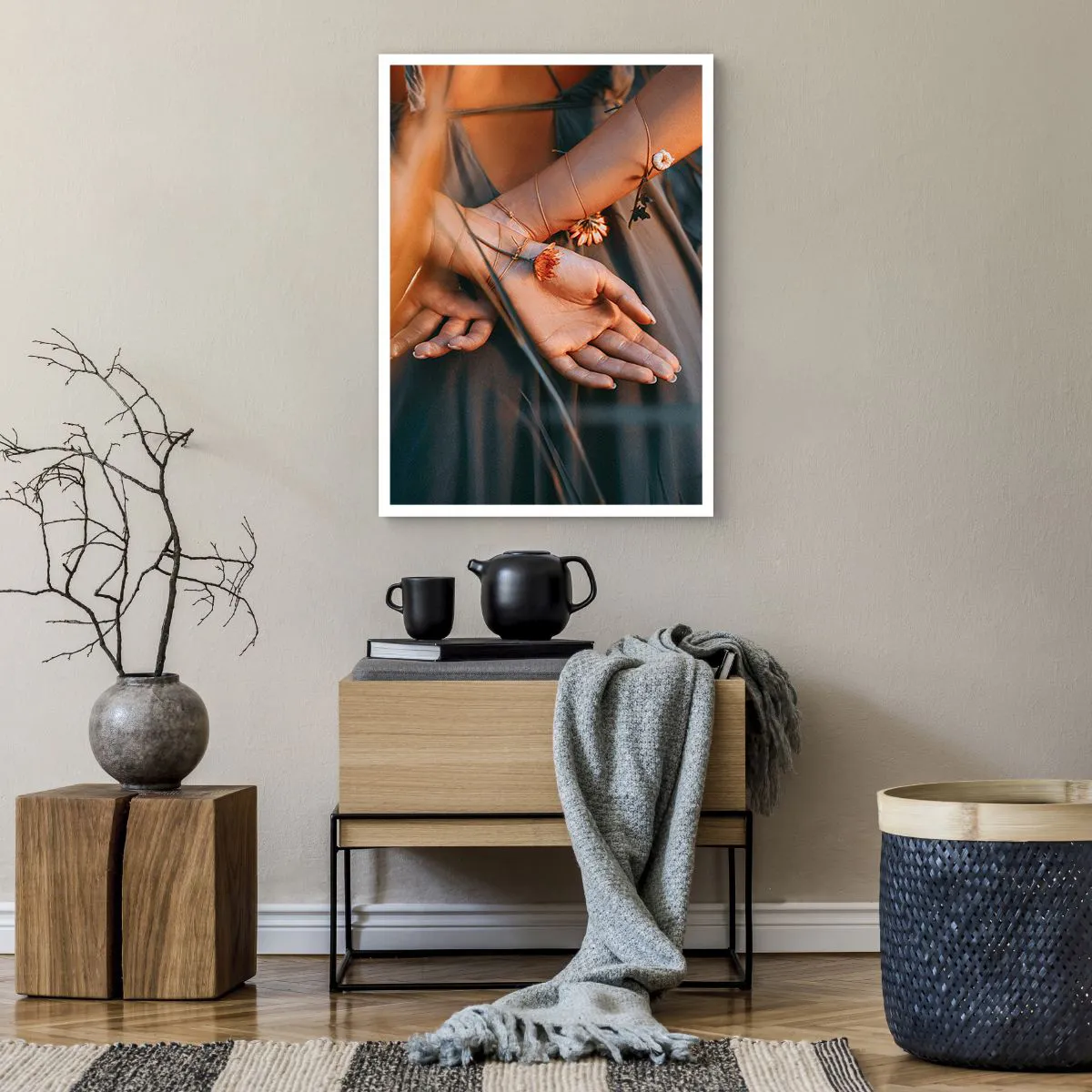 • Női kezek, ékszerek, vintage, Emberek, Előszobába, nappaliba, hálószobába, , Barna, kék, Függőleges
