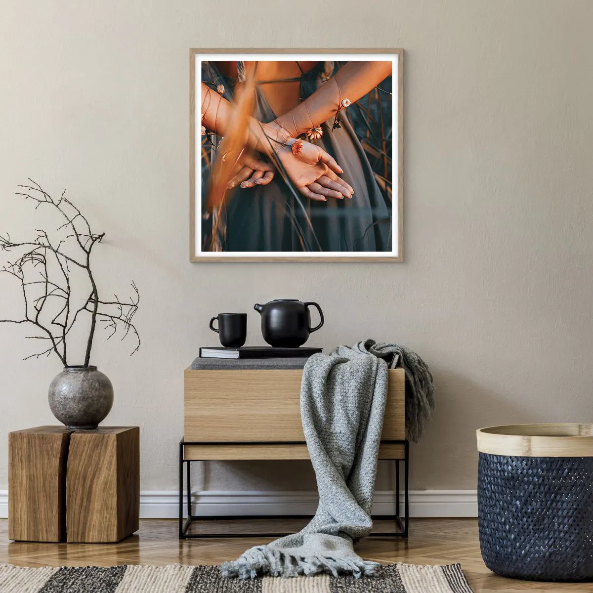 Poszter világos tölgy keretben - Kapcsolatban a természettel - 60x60 cm