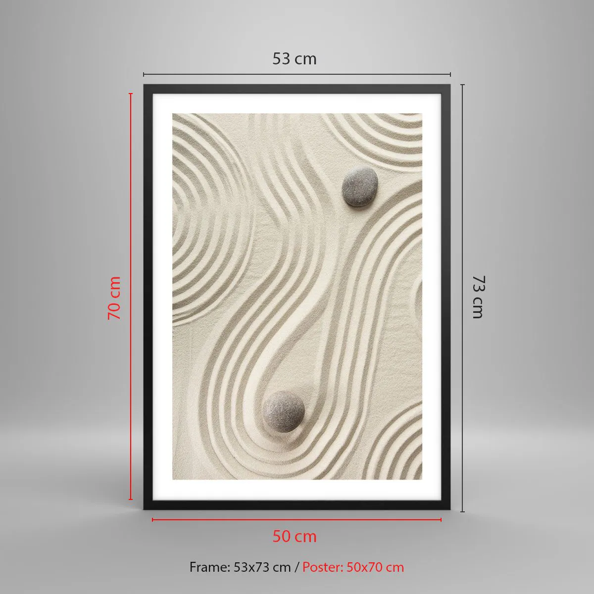 Poszter fehér keretben - Egy minimalista kompozíció egy japán zen kertből kövekkel - 50x70cm - A meleg érintése - Modern fali dekoráció nappalihoz és hálószobához ARTTOR