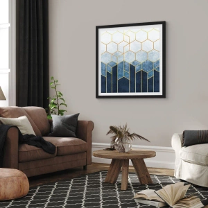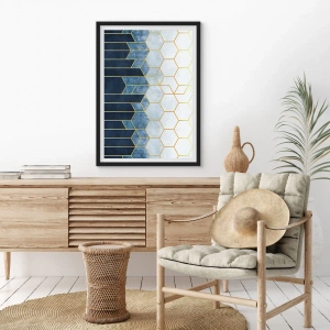 • Absztrakt, Művészet, Hatszög, Absztrakt muveszet, Irodába, dolgozószobába, étkezőbe, előszobába, nappaliba, hálószobába, Kék, szürke, arany, Függőleges