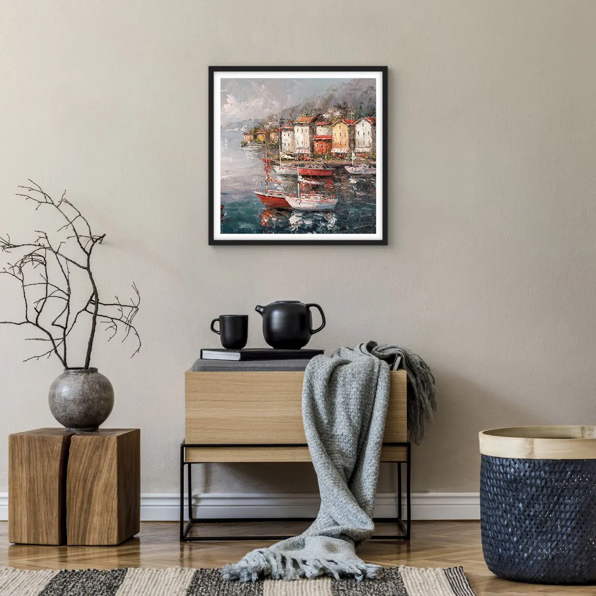 Poszter fehér keretben - Romantikus kikötő - 50x50 cm